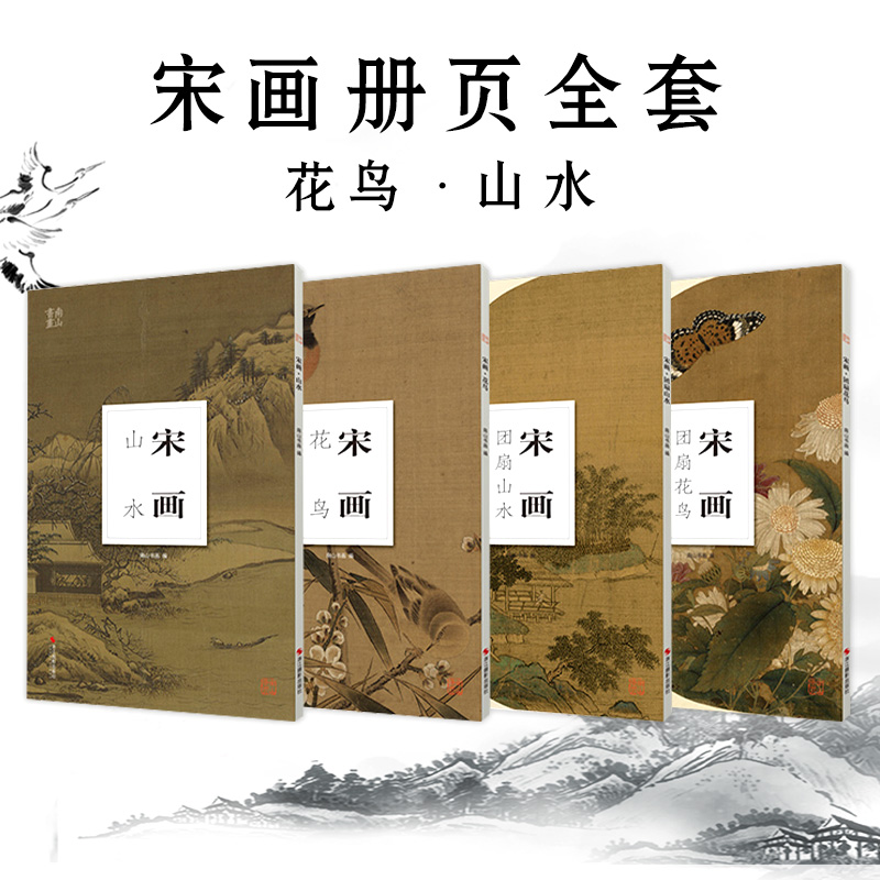 全4冊 宋畫山水花鳥畫冊頁團扇96張 正8開 散頁裝幀 高清圖臨摹裝裱收藏