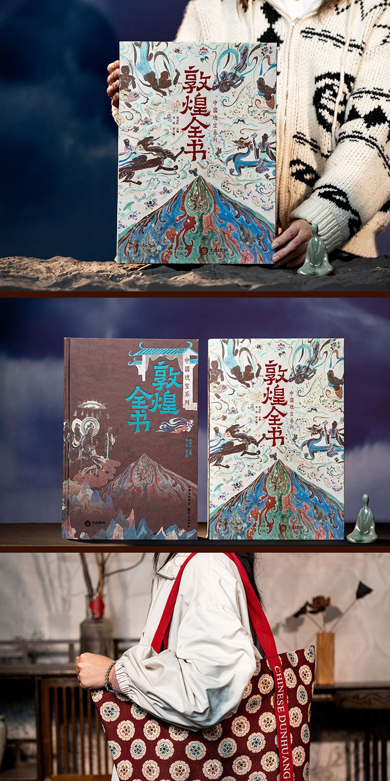 (包裹重超6KG,無法超商入櫃,請選擇宅配到家)【精裝8開刷邊特裝版】敦煌全書 隨附附贈 訂製帆布包+常沙娜手繪藏書票+莫高窟菩薩像
