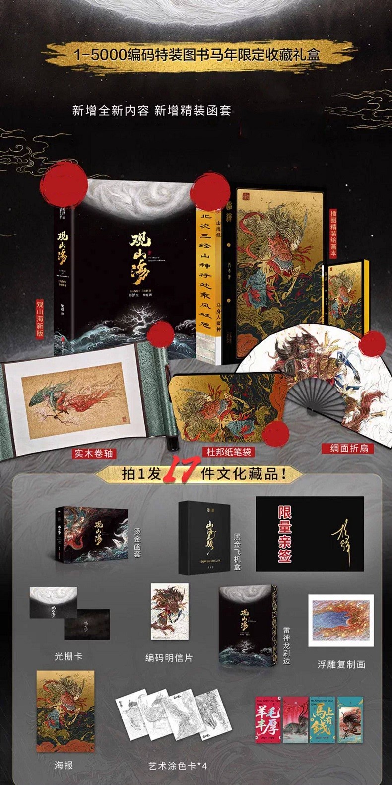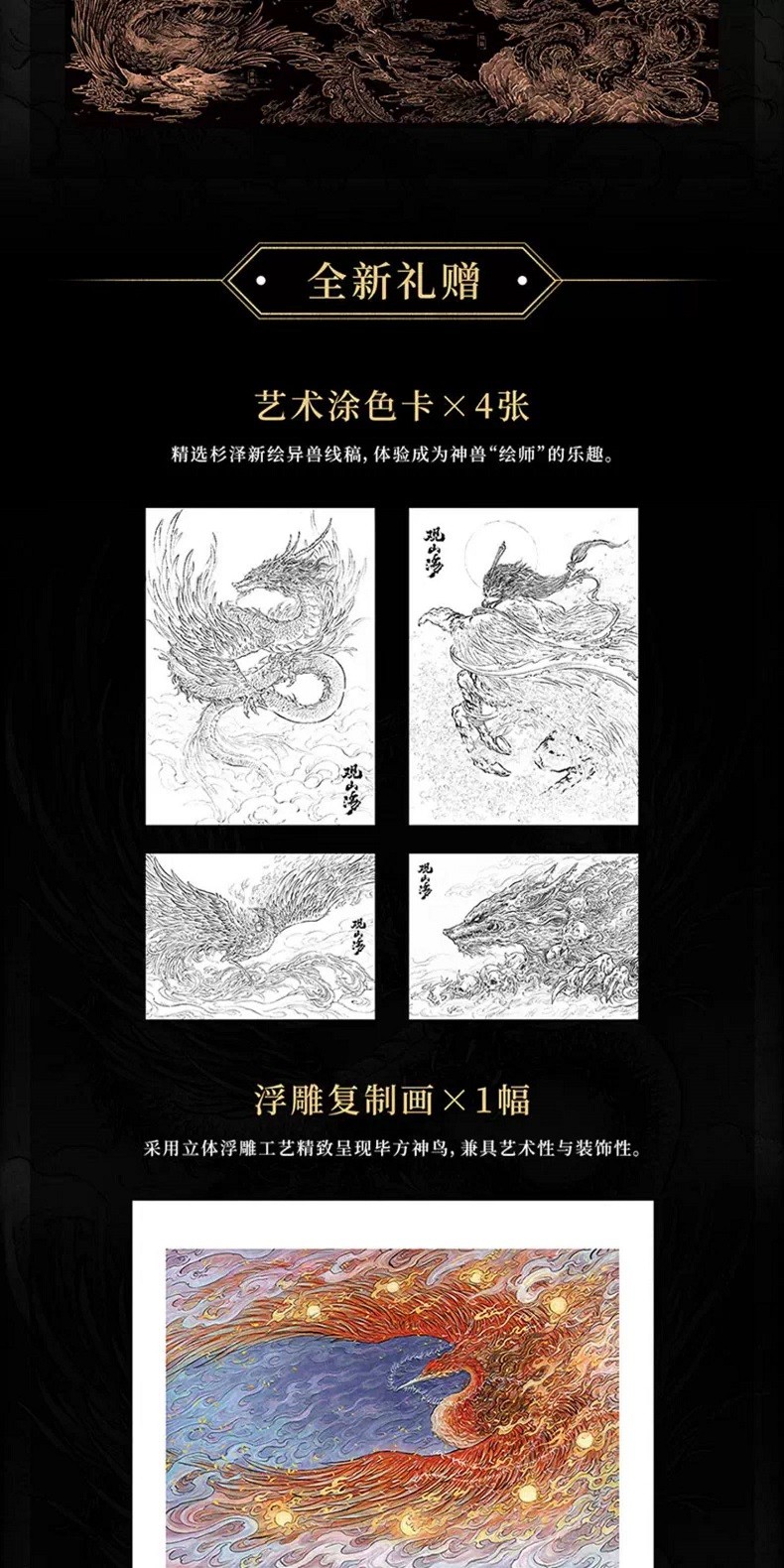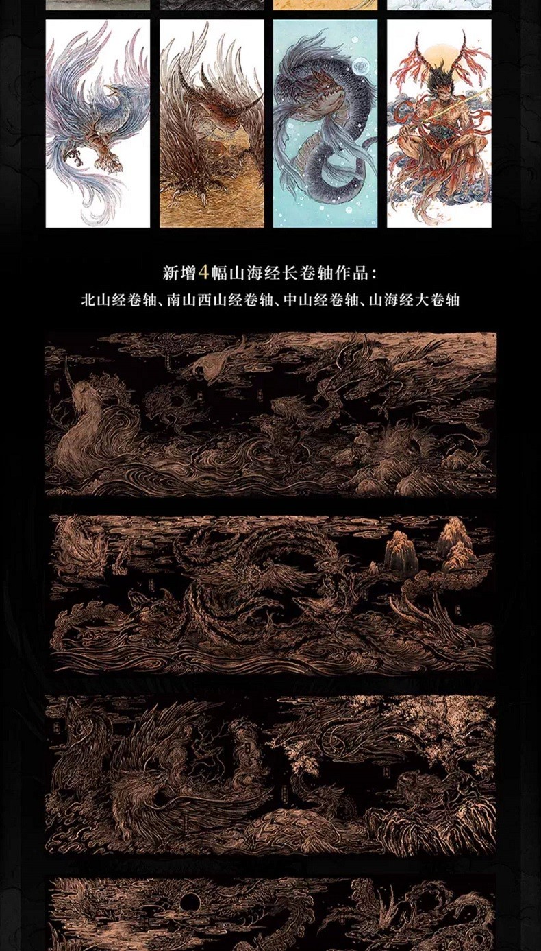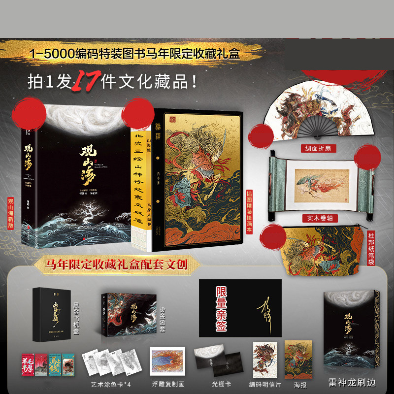 【馬年刷邊典藏版】觀山海 國風畫師杉澤2025新版 異獸觀山海經繪圖鑑 隨書附贈 (實木捲軸+藝術塗色卡+浮雕復刻畫+光柵卡+親簽)