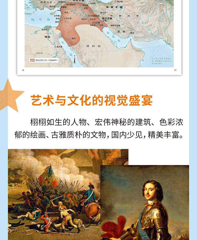 2.《歷史》以圖像敘事和文字敘事互為關照,書中近1000幅彩色插圖,包括壁畫、繪畫、肖像畫、文物、古建、地圖等多種形式,展現了同時期的歷史風貌。