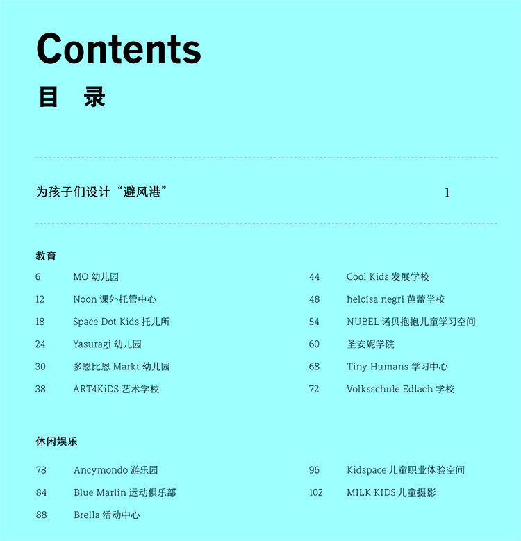本書向讀者展示了來自全球的36個兒童空間的室內與視覺形象(VI)創意設計案例,這些案例聚焦幼兒園、學校、兒童活動中心、少兒俱樂部、遊樂場、兒童產品概念商店和兒童醫院等場所,將適合兒童的視覺元素與空間設計相結合,展示了為兒童量身打造的舒適、有趣的環境,讓他們在這裡學習、玩樂、成長。來自全球的設計師還特別向讀者展示瞭如何借助能瞬間抓住兒童眼球的視覺標識和室內佈局,打造出能讓孩子們產生共鳴、激發他們的想像力,並能夠建立連接感和歸屬感的兒童空間。同時,設計師們還揭示了這些設計理念背後的依據與靈感:對品牌視覺標識進行整合和升級可以提升品牌形象、吸引消費者的目光。