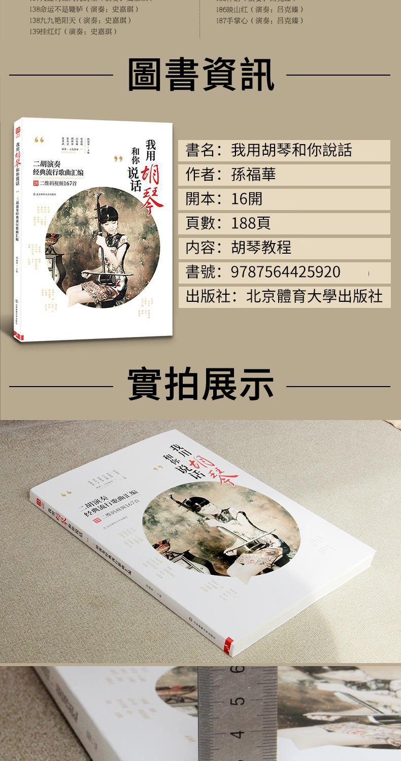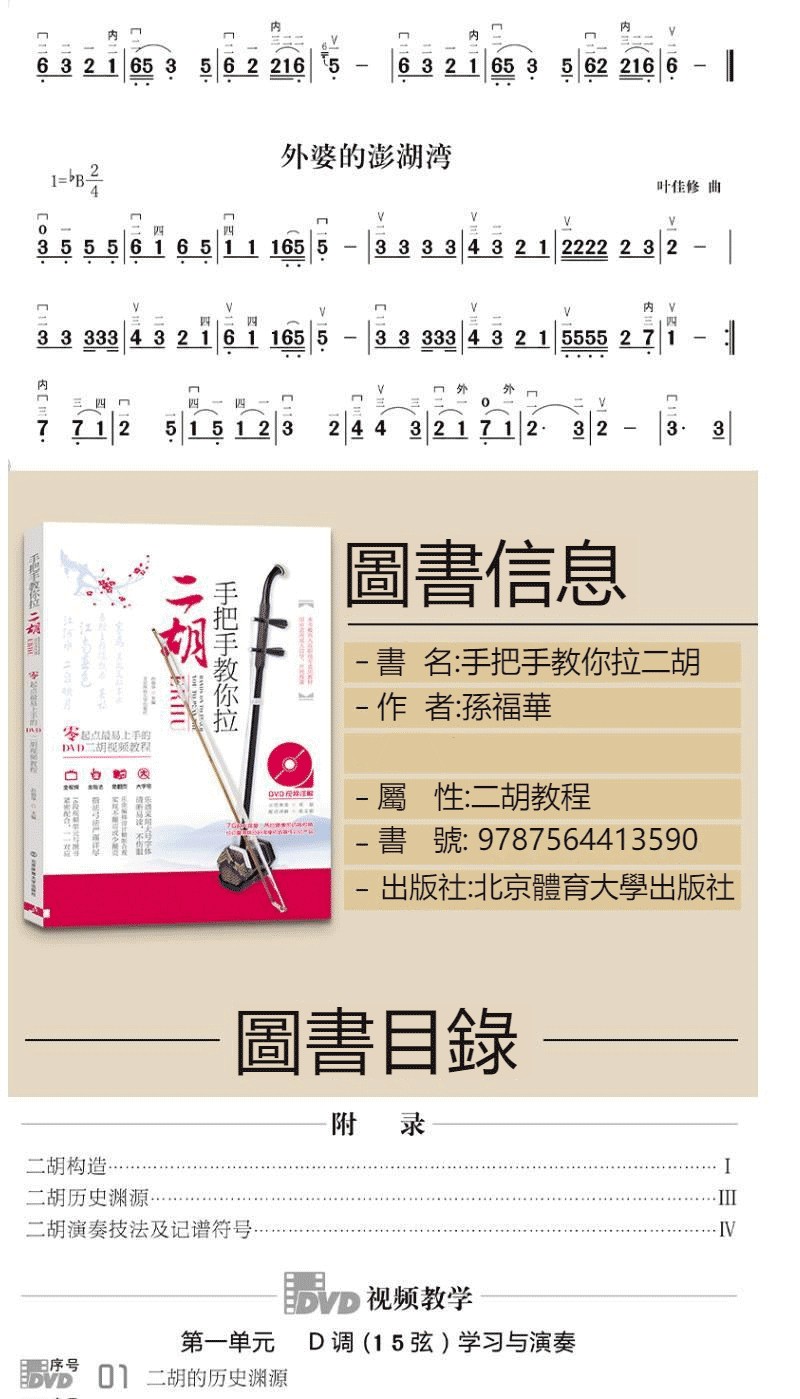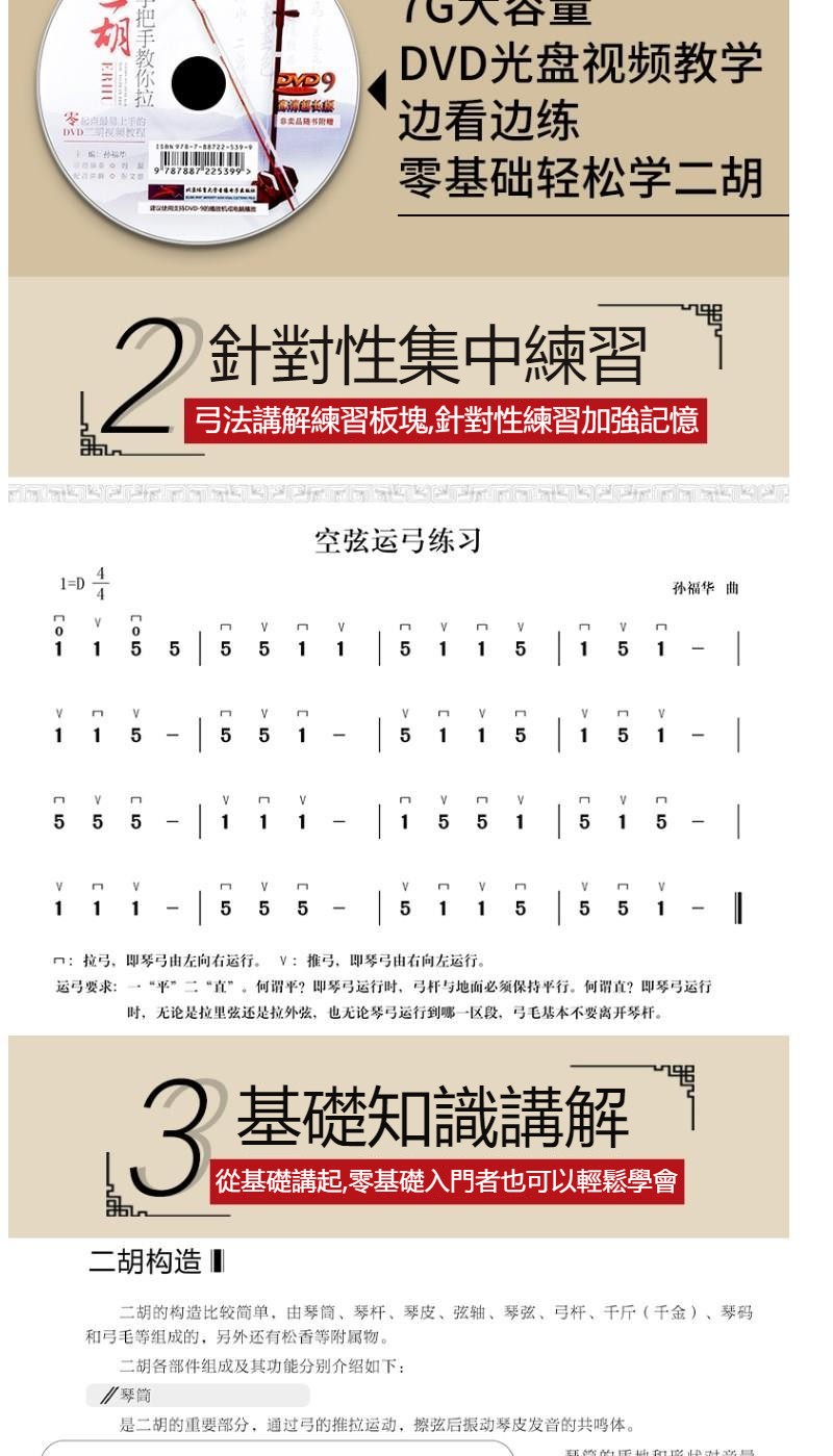 【附贈光盤DVD全套教程+掃碼看視頻】二胡演奏167首經典流行歌曲彙編——書中詳細標有指法,弓法,內外弦等 大字體,專為中老年人設計 高清視頻示範,一學就會!全台免運,貨到付款!