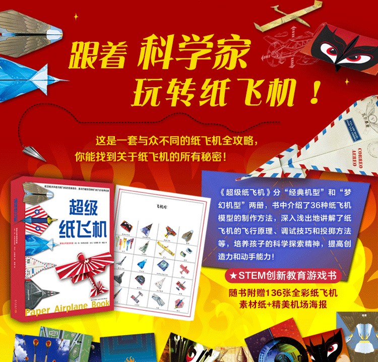 隨書附贈136張全彩紙飛機素材紙和精美機場海報,大人孩子一起玩得過癮!