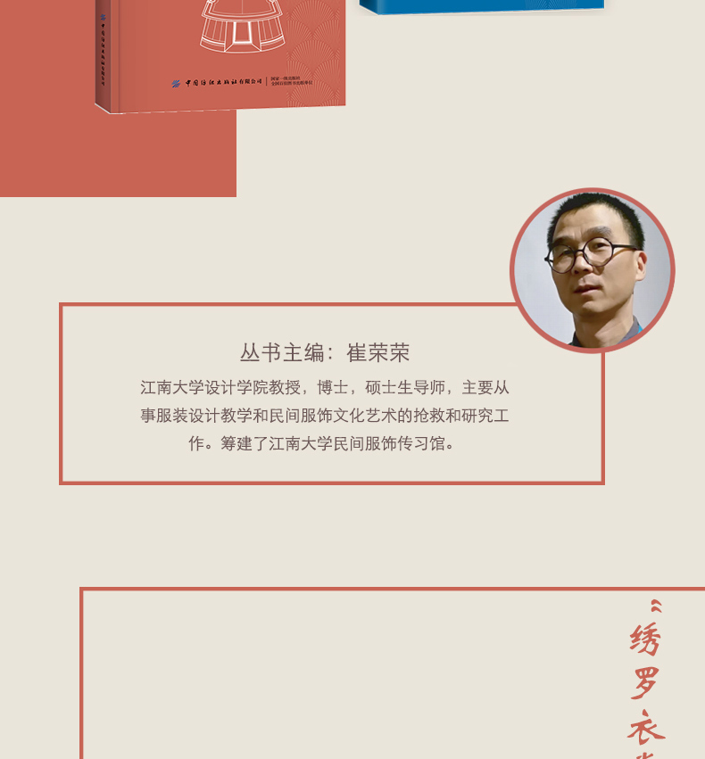 《旖旎錦繡》為“漢族民間服飾譜系”之一。本書依托江南大學服飾傳習館的館藏,結合其他博物館、機構以及私人收藏的漢族民間紡織品實物,對散落在民間的織、染、繡工藝進行調研與記錄,將民間紡織用品的織造、印染、刺繡技藝以及民間紡織品圖案的內容、形式進行全面的梳理,並從文化的角度加以分析,以期能夠引起廣大讀者對傳統織、染、繡技藝的更廣泛關注與興趣,讓更多的人參與到復興與傳承傳統技藝的工作中來,守護漢族民間服飾中蘊含的精神文化內涵,弘揚中華民族優秀傳統服飾文化的理論價值,促進傳統文化產業開發,彰顯古代勞動人民精神智慧。