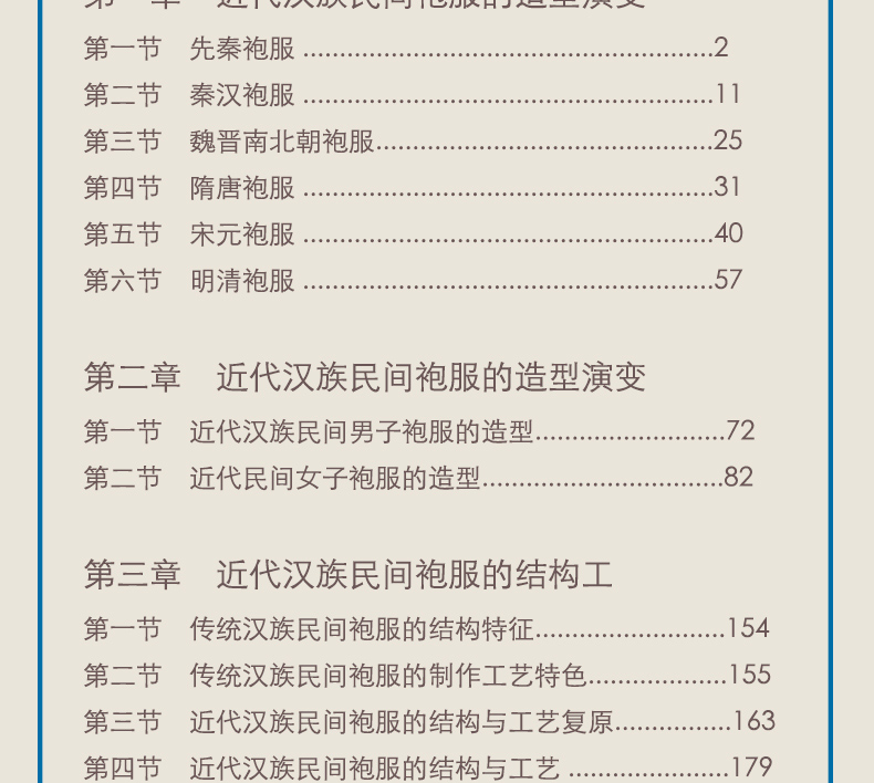 本書以江南大學傳習館藏品為基礎,對中國歷代漢族服裝的襟邊緣飾做了詳細深入的梳理與研究,包括如服飾文化、形制、色彩、圖案、工藝以及在現代服裝上的應用等方面,對於研究中國歷代服裝有較強的指導意義。