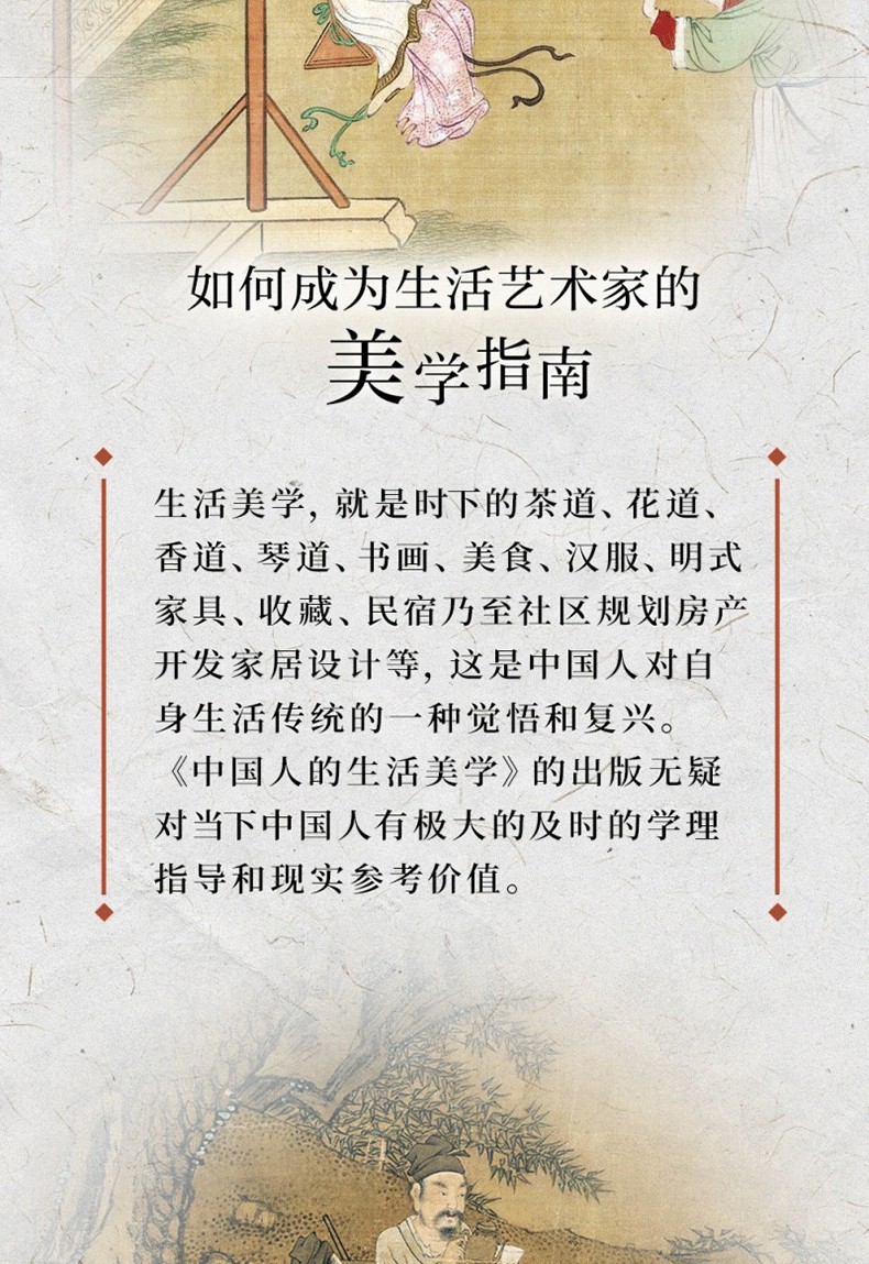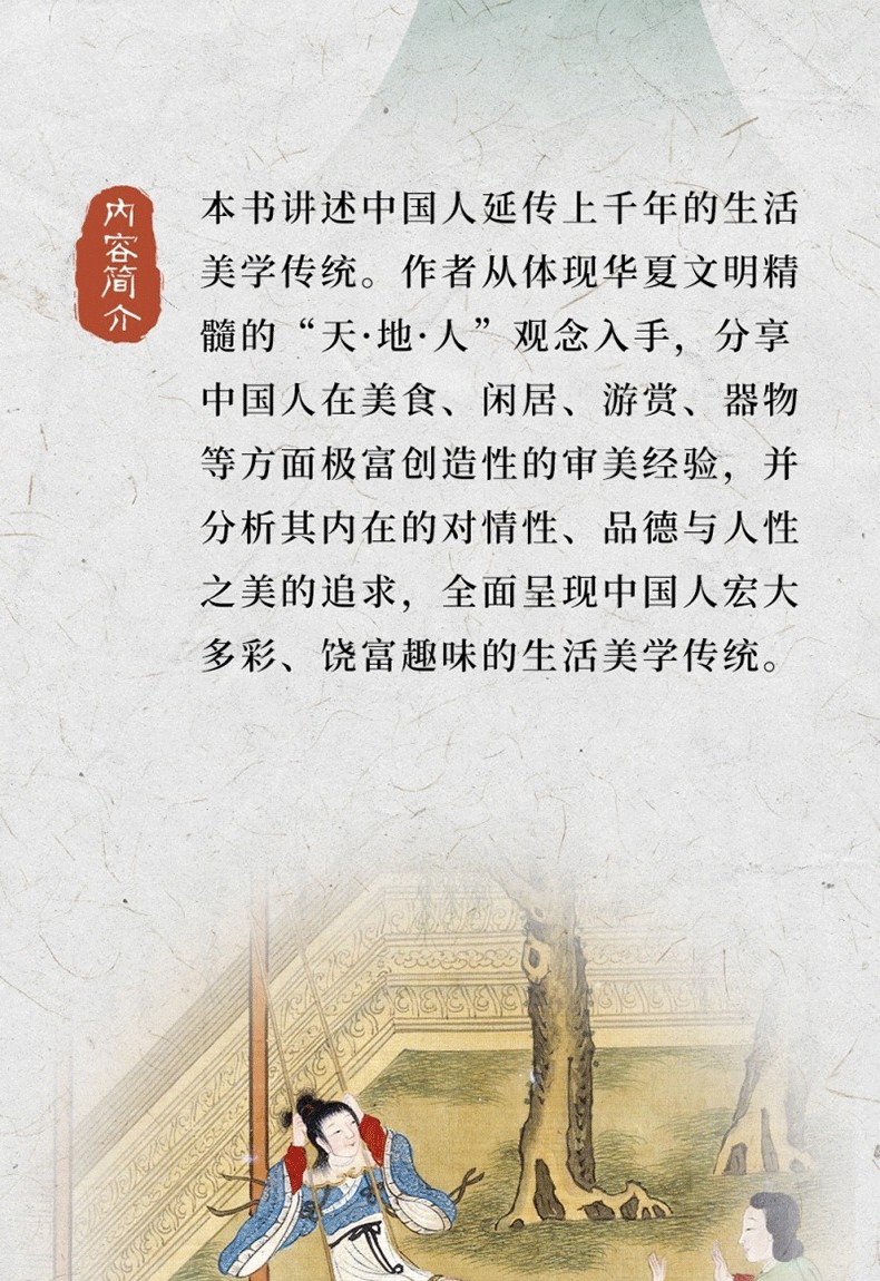 作者作為「生活美學」的發起人,此書匯集了他多年梳理、發現和總結的經驗與體悟。近一百五十幅精美圖片的呈現使全書如一幅移步換景的長卷,韻味悠長的繪畫、莊重的禮器、精美的佩飾融於多姿多彩的生活日常之中,這才是中國人的「審美即生活」。