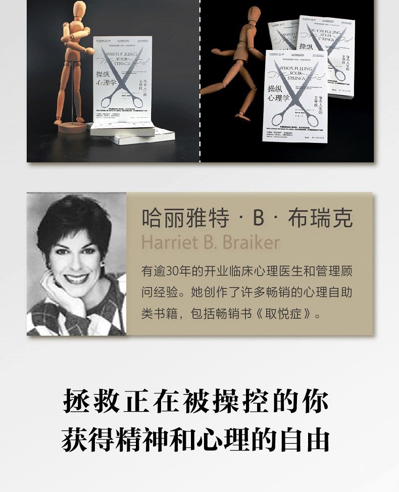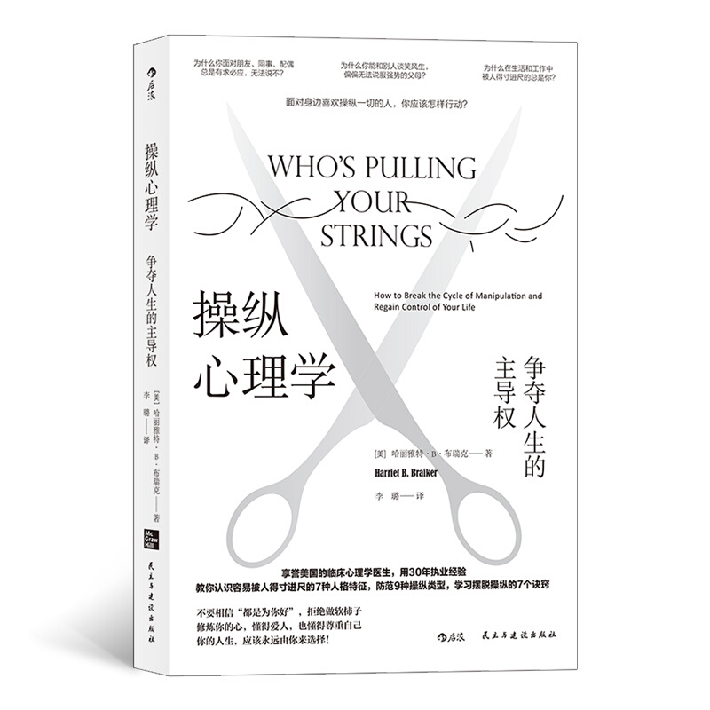 不論男女,都有可能深陷操縱的泥淖,受他人的情感操縱、侮辱,被拖拽進操縱者蓄意或無意的心理遊戲中。而操縱者可能是上司、同事、下屬,也可能是伴侶、朋友和家人。這些“有毒”的人際關係會侵蝕自尊,摧殘心靈,虛耗人生。美國最懂心理操縱的臨床心理醫生、心理學博士哈麗雅特·B·布瑞克講解讓你成為被操縱者的7個弱點,概括了操縱者的9種類型,分析了操縱者的動機、目標和手段,還提供了心理測驗,讓你評估自己是否容易被操縱,是否處於操縱關係之中,並總結概括了抵抗操縱的關鍵7招,幫助你擺脫操縱關係,不做軟柿子,重掌人生的主動權。