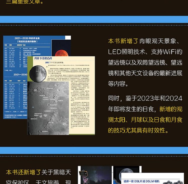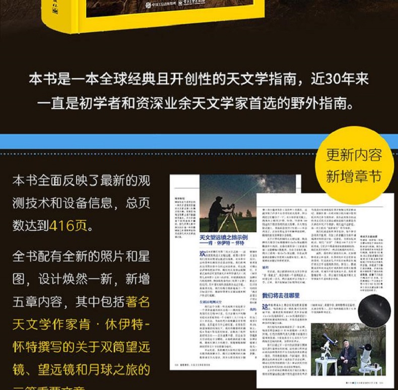 本書全面反映了最新的觀測技術和設備信息,經過大規模修訂和擴展,增加了48頁,總頁數達到416頁。全書配有全新的照片和星圖,設計煥然一新,並新增了五章內容,其中包括著名天文學作家肯·休伊特-懷特撰寫的關於雙筒望遠鏡、望遠鏡和月球之旅的三篇重要文章。