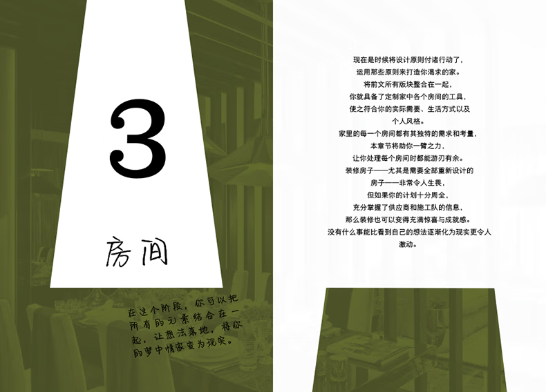 第三部分.各房間的設在這一部分,凱莉赫本將上述設計原則和裝飾元素運用到不同空間的設計中。講述在入口、走廊與流通空間、臥室、餐廳等空間的設計