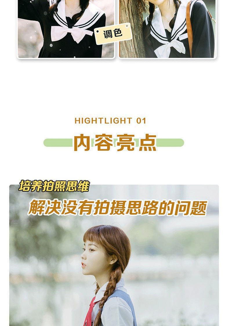 本書是一本人像攝影實戰案例與後期指南,本書採用案例的形式,詳細講解在不同創作場地、不同光線、不同主題的條件下應該如何從準備、到拍攝、到後期,一步步完成一套完整的拍攝流程。作者和模特櫻桃喵走遍了不同城市,在不同場合下拍攝了15組少女風人像攝影案例,並配有現場場地分析以及拍攝花絮以供對比學習。每組案例都配有後期修圖步驟,兩者結合起來,讓讀者能直觀地體驗攝影師拍攝以及後期的全過程。