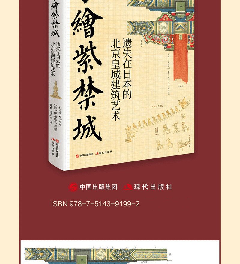 本書是1901 年伊東忠太、奧山恆五郎等學者對北京紫禁城及相關建築進行實際測量、拍照、素描寫生,按原件比例縮繪後編纂而成,對中國古代建築結構和裝飾進行了詳細的解剖和說明。主要描述了中國古代建築裝飾的種類及搭配、分類建築的不同色彩使用和整體建築的色彩搭配,分析了天花板、梁、柱、斗拱、牆面、台階、寶座、門廊、屋瓦等建築裝飾,以700餘幅精美的手繪圖片完整地呈現了100年前北京紫禁城的建築風貌。