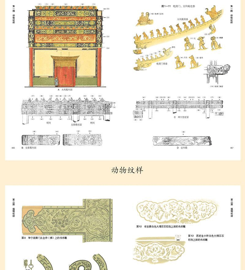 《手繪紫禁城》裡還有許多這樣的細節,從結構、紋樣、色彩入手,把它們放大、詳解,從細微之處重新認識和欣賞這座宏偉的宮殿群。