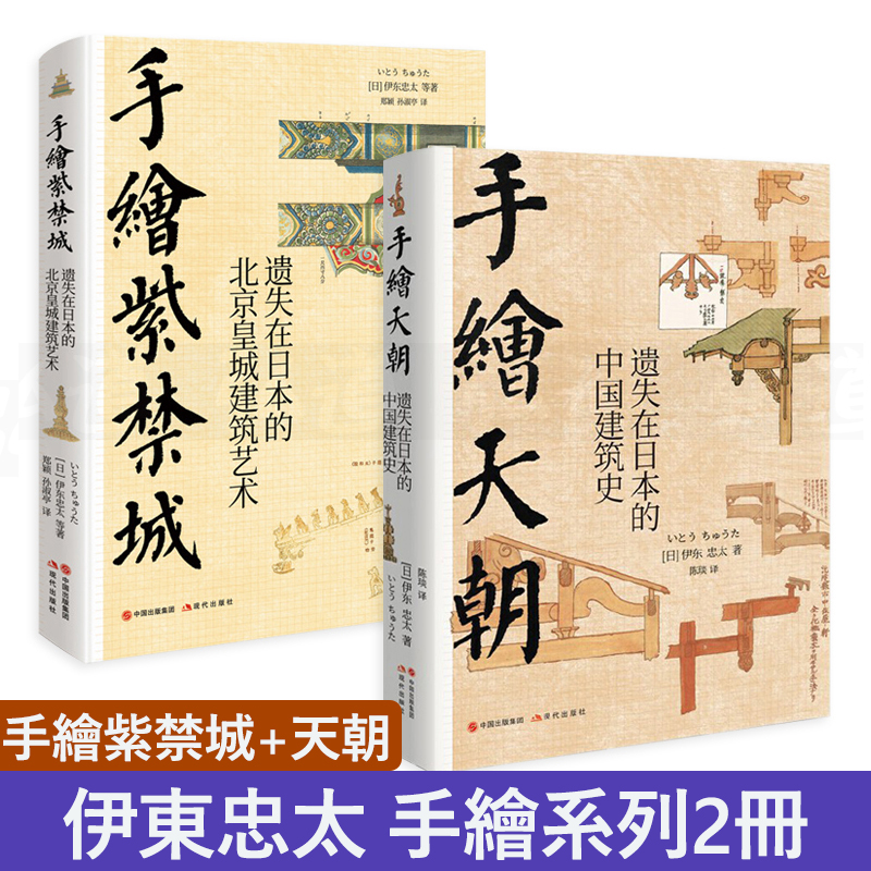【精裝鎖線全彩】手繪天朝+手繪紫禁城 伊東忠太著 中國古代建築手繪筆記 (附贈 皇城,紫禁城 西苑原版圖 )