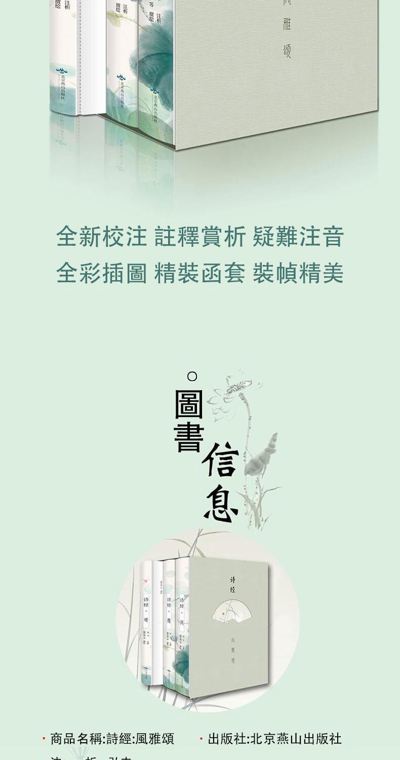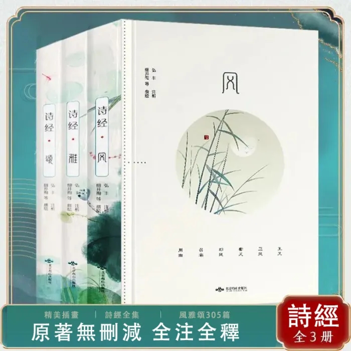 【精裝硬殼全彩珍藏版】文學與美學的家底《詩經》,風雅頌3冊,美得窒息的珍藏版!全臺免運 貨到付款