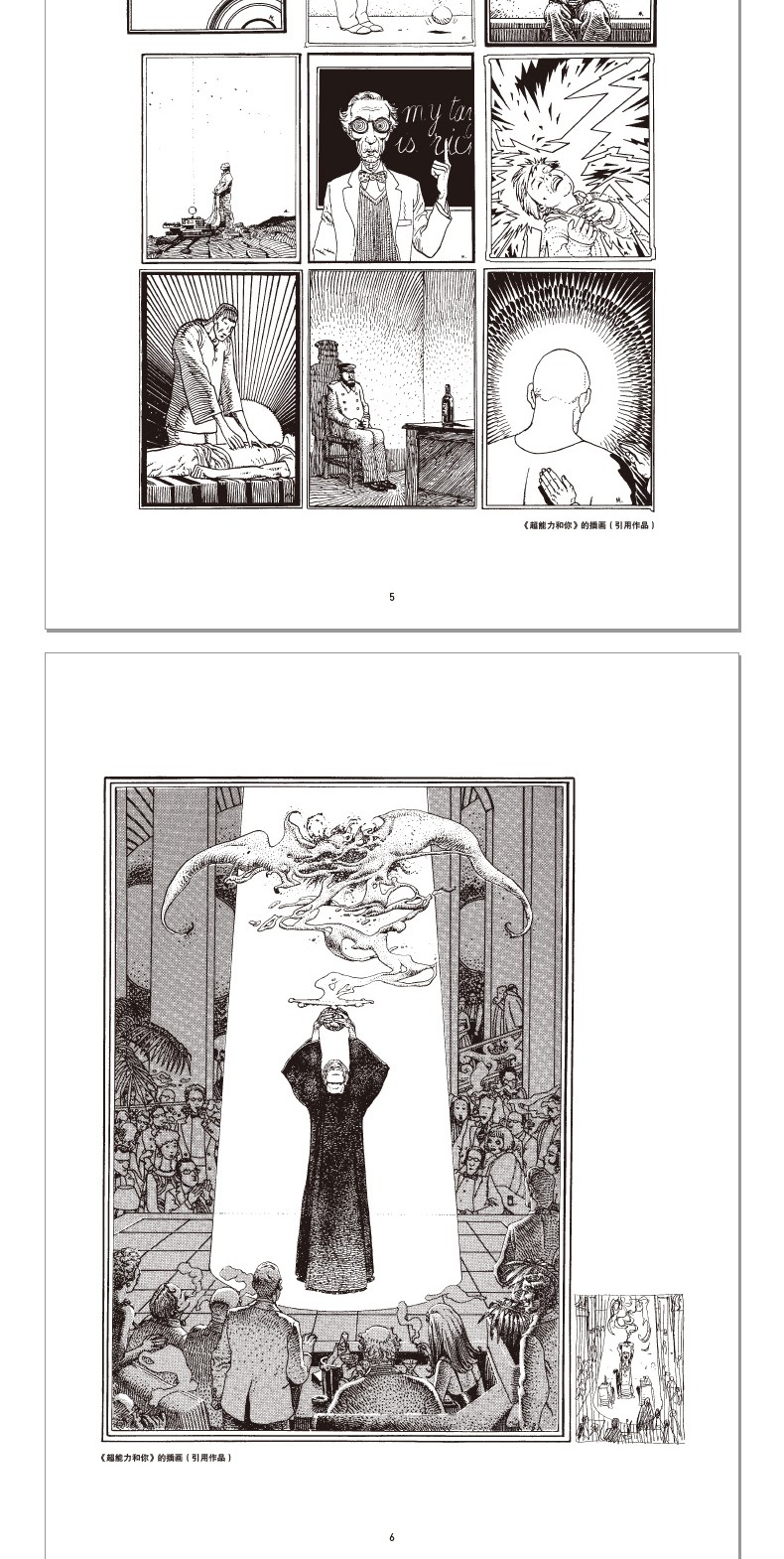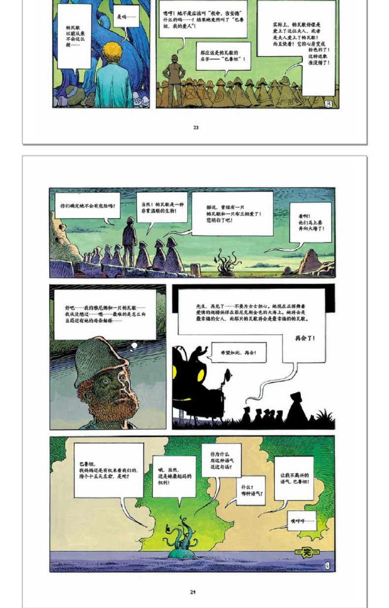 從精細繁複的工筆到潦草靈動的寫意,從刻畫入微的寫實到誇張幽默的卡通,從以純線條描繪光影的黑白線稿到絢麗奪目的彩色畫稿,統統游刃有餘。這本包羅萬象的插畫集充分展現了「千面畫家」墨比斯作為插畫家令人驚豔的一面。