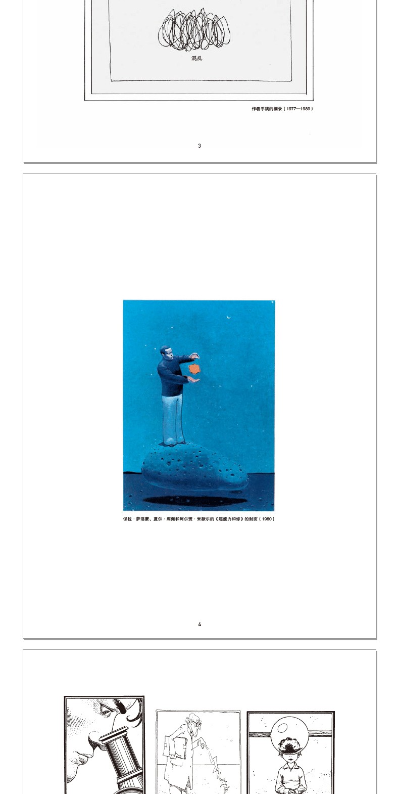 文如其題(「混亂」),這是一篇廢話滿篇、邏輯混亂的序言,卻能讓人讀得津津有味、忍俊不禁。墨比斯始終認為他的作品應該被歸類為幽默類,一種有點幼稚的超現實主義幽默,從這篇序言裡亦可一窺他骨子裡的幽默感。