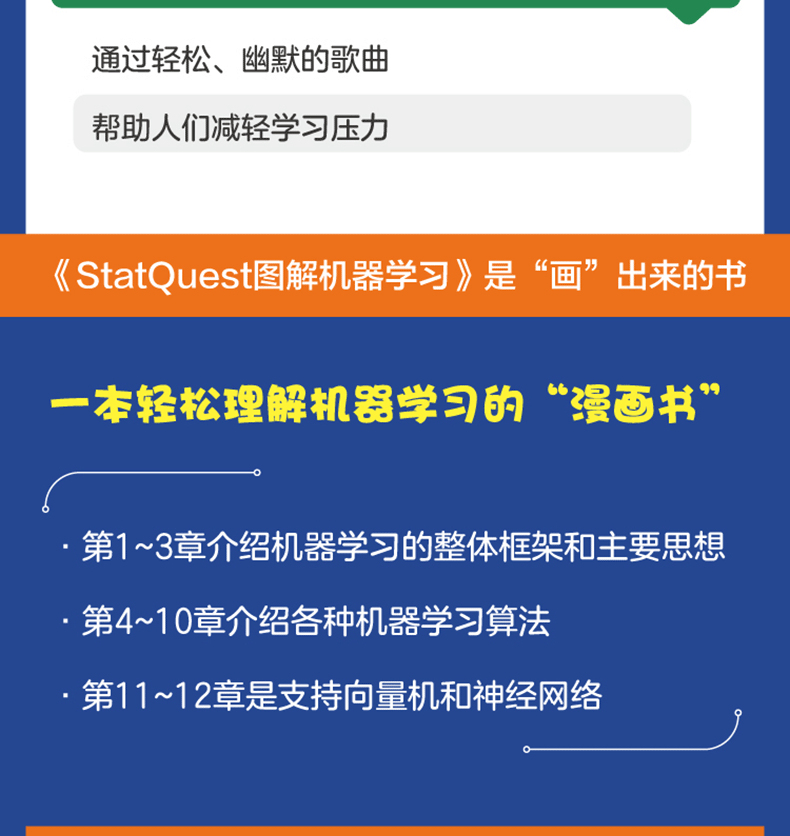 他獨特的圖文表達形式和幽默的語言風格深受觀眾喜愛。這本《StatQuest圖解機器學習》結合了他創新的視覺呈現方式,深入淺出地闡釋了機器學習的基礎知識和高階知識,是一本輕鬆理解機器學習的「漫畫書」。是我們都愛的StatQuest統計學和機器學習書。