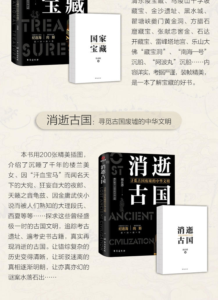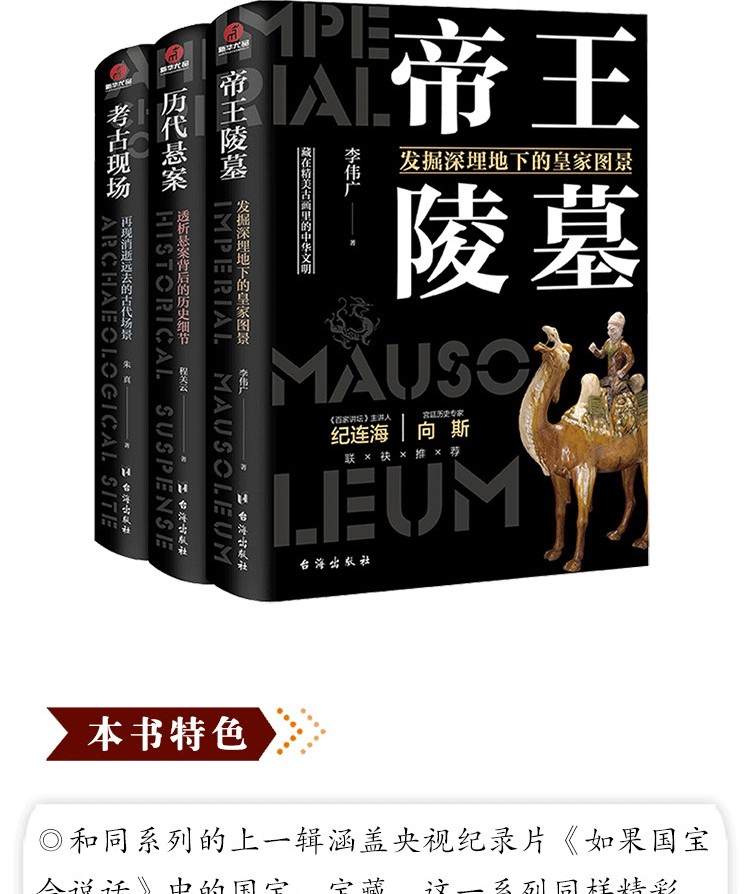 2.和同系列的上一輯涵蓋央視紀錄片《如果國寶會說話》中的國寶、寶藏,這一系列同樣精彩,分別從歷代帝王、懸案和考古的角度展開,圖文並茂地呈現古時的偉大與玄妙,全方位展現歷史中細節的魅力。