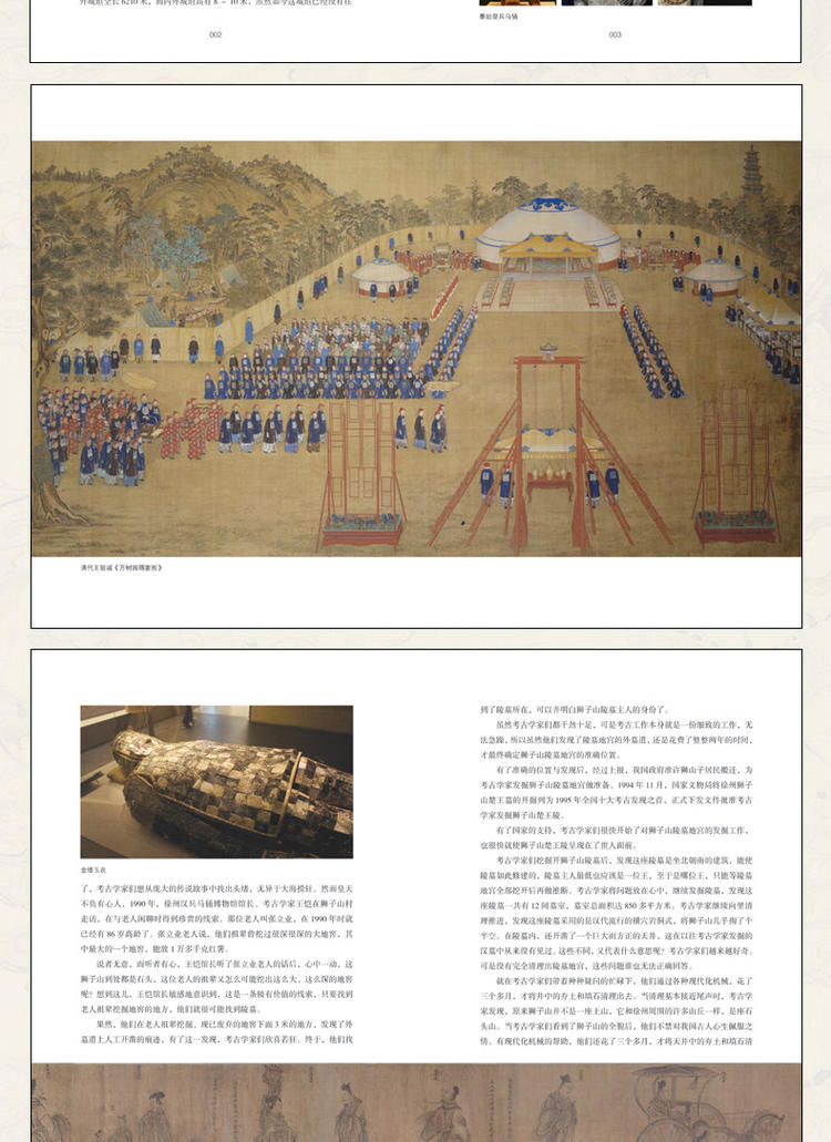 帝王陵墓通過嚴謹細膩的文字、引人入勝的內容配合精美配圖,向讀者展示著中華文明的成長與發展軌跡。無論從建築和裝飾技藝上看,還是從數量、規模來看,各代王朝的陵墓座座都值得後人探索和研究。因為陵墓裡除了有價值不菲的陪葬品外,其中所蘊藏的關於中國文化源流的珍貴線索,都可以大大滿足今人們對自己祖先生存狀態的強烈好奇。要知道,無論哪個人,當他看到那些精妙絕倫、超乎想像的古文化的時候,心中肯定會油然升起一股對自己祖先的崇敬和自豪之情。這些帝陵好像是一座座中華文明的博物館,有著無與倫比的文化價值。