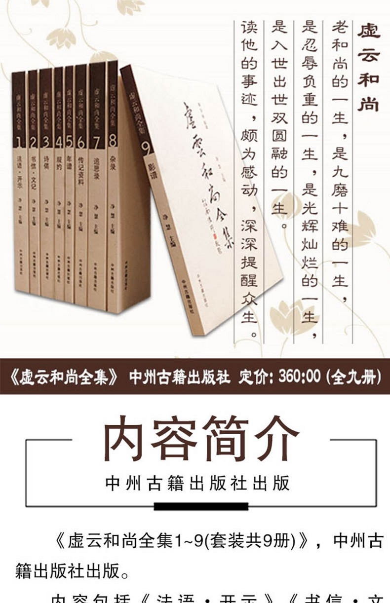 虛雲和尚全集(全套9冊)淨慧主編 老和尚開示錄年譜書信 虛雲大師傳