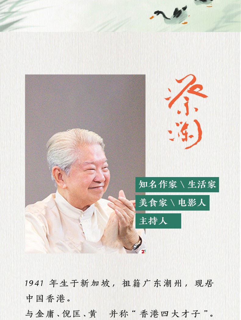蔡瀾 1941年出生,祖籍廣東潮州,現居香港。作家、生活家、美食家、電影人、主持人。 《舌尖上的中國》總顧問,《新週刊》年度生活家。與金庸、倪匡、黃霑並稱「香港四大才子」。 向來瀟灑,過得任性。最會吃,最懂喝,最能玩,是一個真正把人生活透了的人。 為人通達智慧,為文雋永簡練,迄今出版圖書七十餘本,深受讀者喜愛。