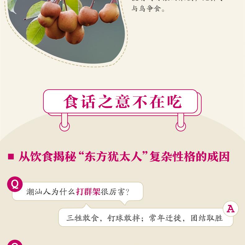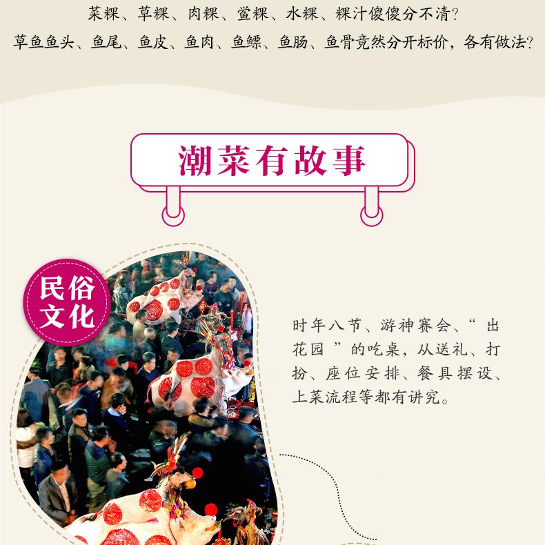 本書分為海產卷、肉食卷、粿品卷、主食卷、小食卷、蔬菜捲、水果捲和調味卷八卷,詳細介紹了每一種物產背後的民俗掌故、歷史發展、味型設計、烹製手法和保健功效,可謂潮汕美食知識大全。以100多道典型潮菜為切入點,探究美食與民俗、民智、情懷、情趣之間的關係,以風趣詼諧的語言描繪被時代浪潮所掩埋的潮汕飲食文化脈絡,教讀者品味潮菜的同時,更能夠知其所以然。對於想研究潮菜的廚者、甄別真假......