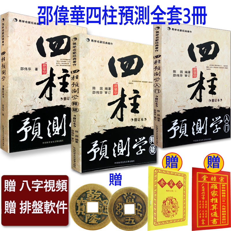 正版四柱預測學入門 釋疑 3冊(贈八字視頻+排盤軟件+乾隆通寶3個+老黃歷+羅家推算通書)