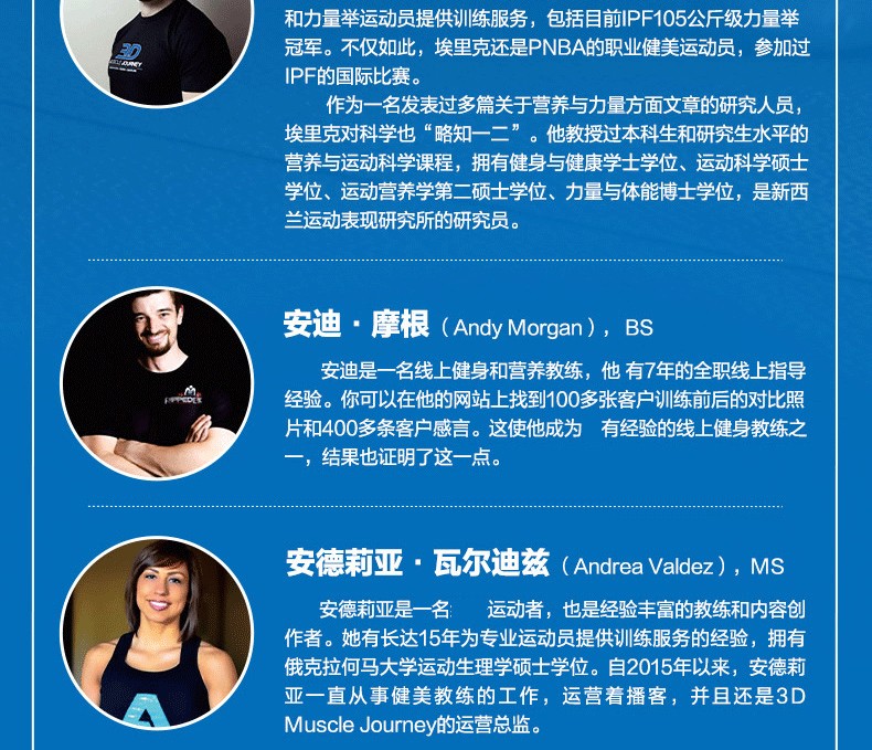 作為一名發表過多篇關於營養與力量方面文章的研究人員,埃里克對科學也“略知一二”。他教授過本科生和研究生水平的營養與運動科學課程,擁有健身與健康學士學位、運動科學碩士學位、運動營養學第 二碩士學位、力量與體能博士學位,是新西蘭運 動表現研究所的研究員。