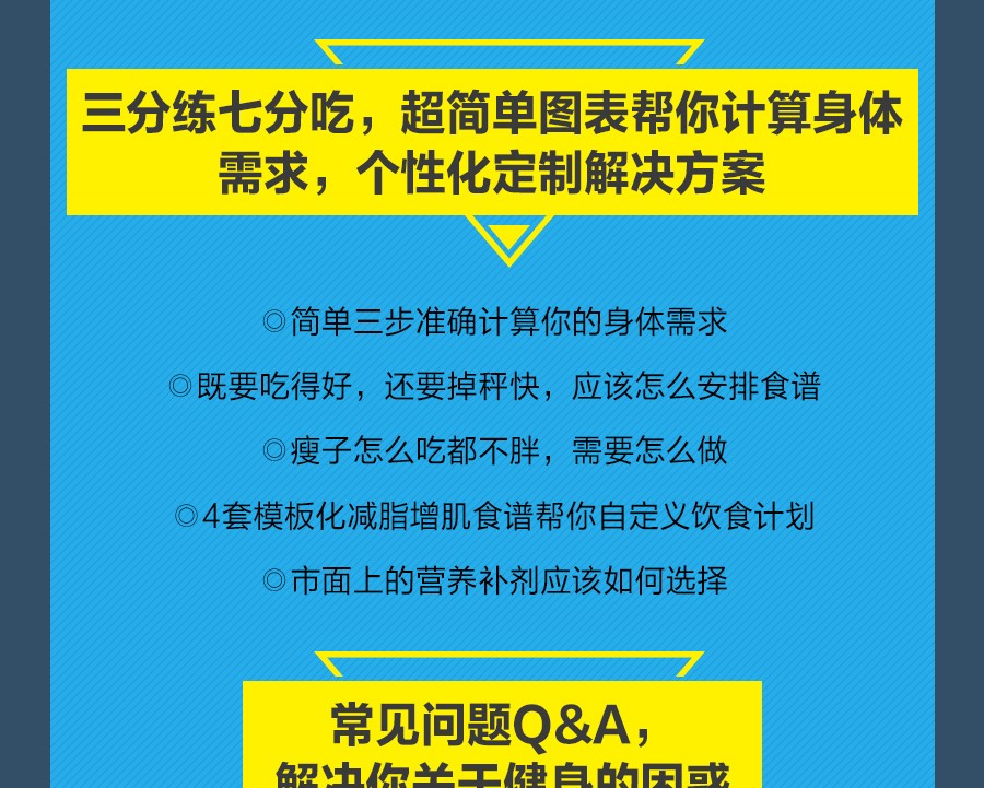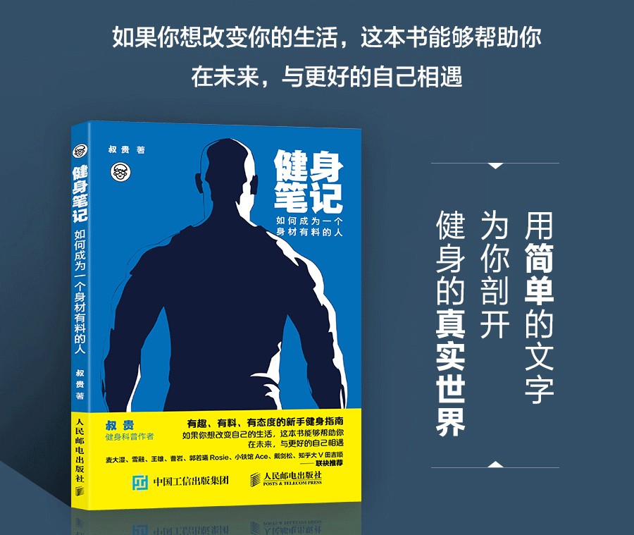 《健身筆記(如何成為一個身材有料的人)》是由知乎人氣健身科普作者叔貴寫給新手的健身入門指南。面對互聯網上大量的健身信息,剛開始健身的你是否感到迷茫――作為健身“小白”,應該如何開始鍛煉,從哪裡入手?堅持運動了很久,為什麼一直瘦不下來? “三分練,七分吃”是真的嗎?拉伸到底能不能瘦小腿……這些常常令新手感到困惑的問題,本書都給出了解答。此外,《健身筆記(如何成為一個身材有料的人)》還提供了適合新手的身體各部位的訓練動作,以及適用於家庭、健身房和辦公室的拉伸、減脂、增肌等訓練計劃,並對日常的營養策略做了詳細闡釋,教你如何根據自身的熱量需求安排健康的一日三餐。