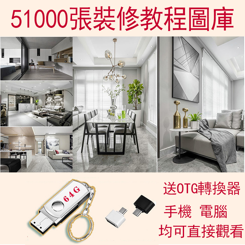 51000張室內裝修設計效果圖U盤64G 手機電腦看各種裝修風格全景案例方案