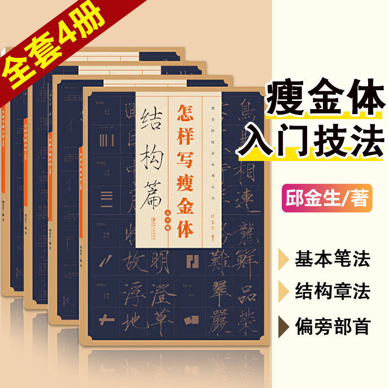 怎樣寫瘦金體全套4冊 邱金生著 基本筆法結構章法偏旁部首解析 宋徽宗楷書千字文臨摹本 瘦金體毛筆書法字帖入門技法教程工具書