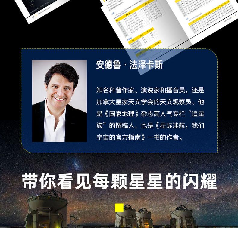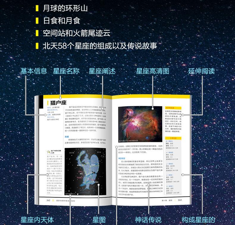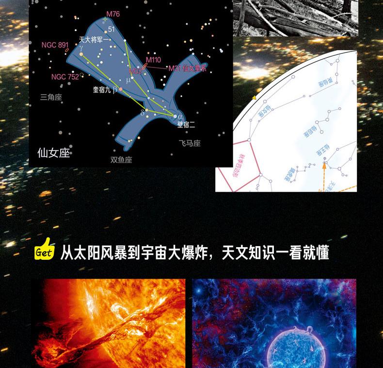 在本書中,你不僅能收穫觀星的實用指南,還能看到多種多樣的天文知識,包括最新的太空探索任務、關於典型天體的前沿理論和認知歷程等。書中還有很多有趣的故事,能豐富你學習觀星的體驗,如天文學的歷史、星座的傳說以及歷史中重要觀星人的介紹。