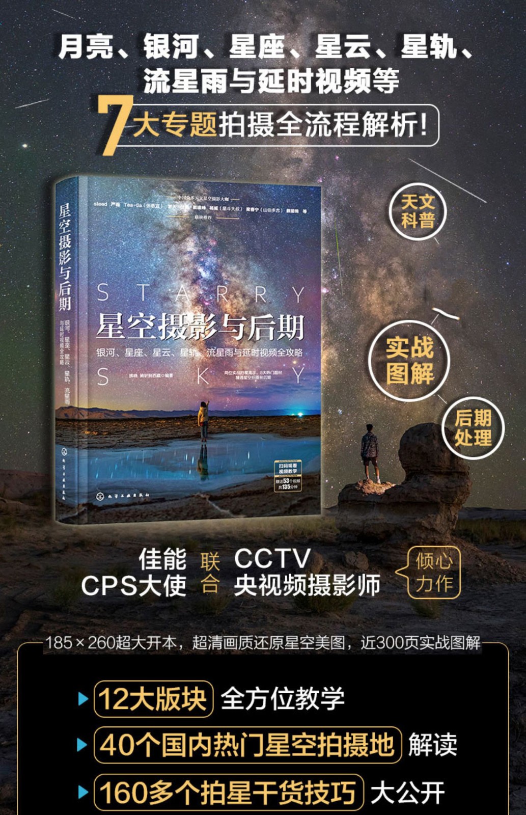 本書集結了兩位星空攝影師40多個拍攝星空的景點和經驗,書中內容具體分為12章,對月亮、銀河、星座、星雲、星軌、流星雨以及星空延時視頻等攝影題材進行了詳細講解,包括前期的拍攝技術與後期處理流程,能快速提升你的星空攝影技術,助你從小星快速成長為專業星空攝影師。