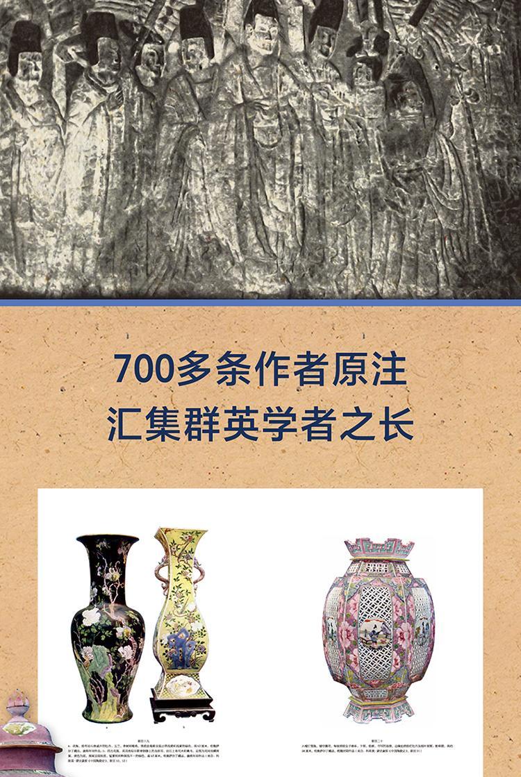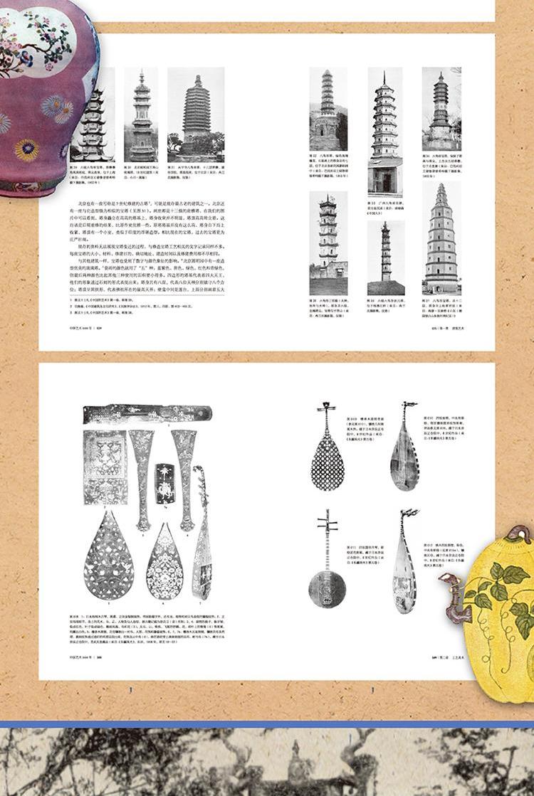 書中收錄675幅黑白圖版和23幅彩色圖版,其中不乏藏於巴黎盧浮宮、倫敦大英博物館、紐約大都會博物館等地的文物原件的圖片及在中國實地拍攝的照片。每幅圖片均詳述器物名稱、尺寸、收藏信息等。本書是研究中國傳統藝術的珍貴史料,可謂“中國藝術大百科”。