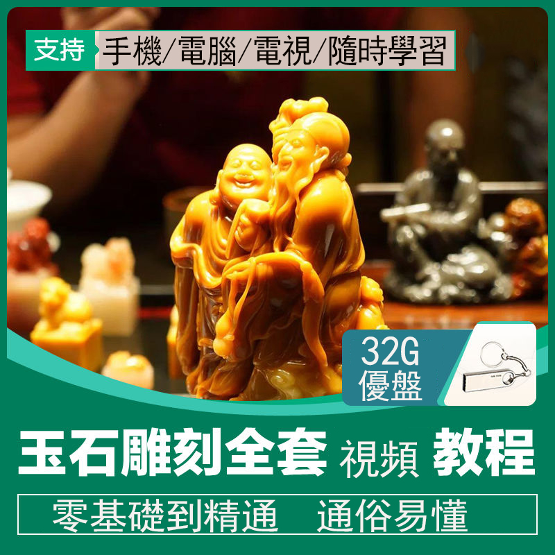 玉石雕刻教學U盤32G 教程視頻 自學全套玉器雕教學技法加工鑑定優盤