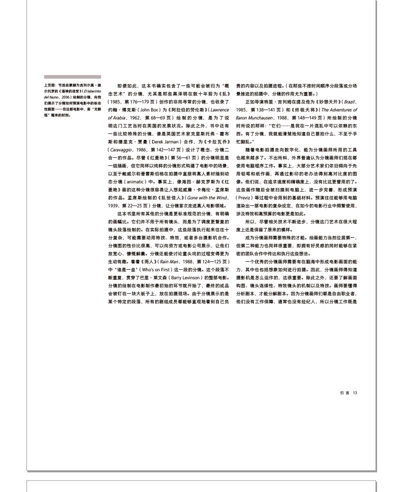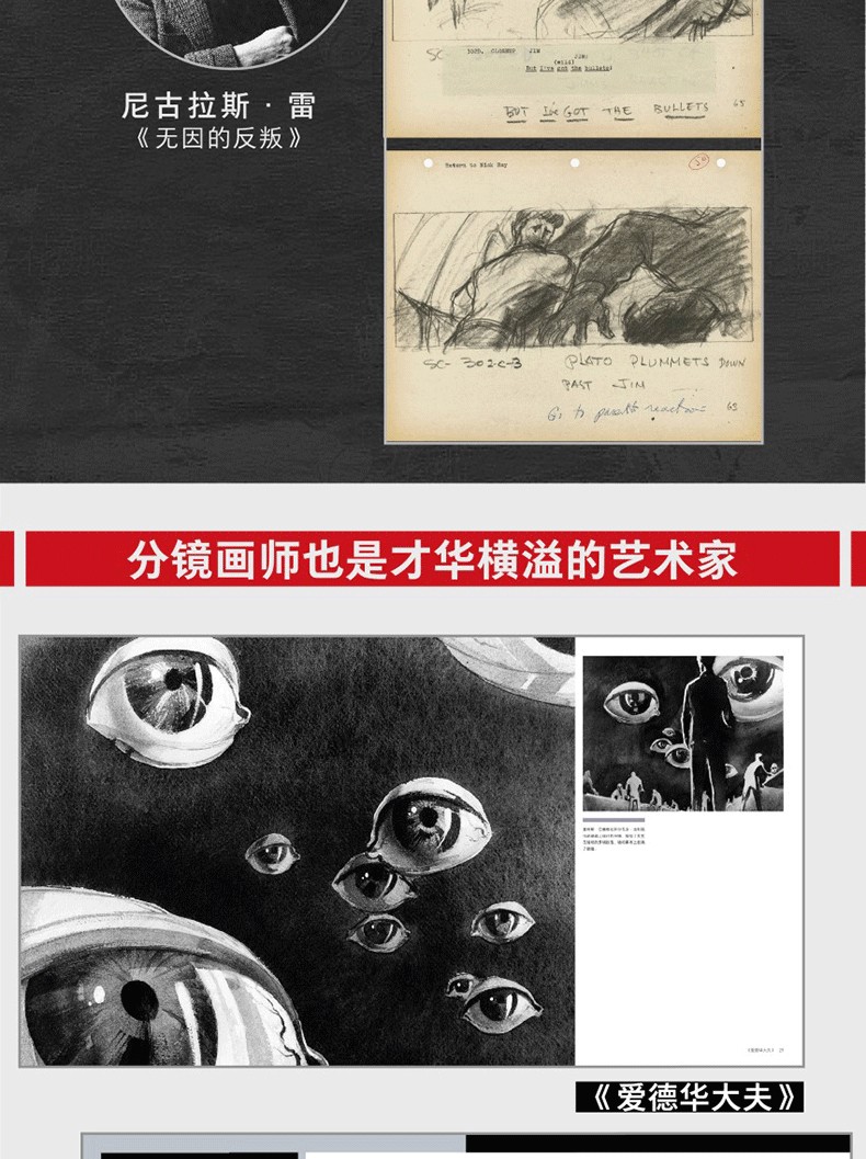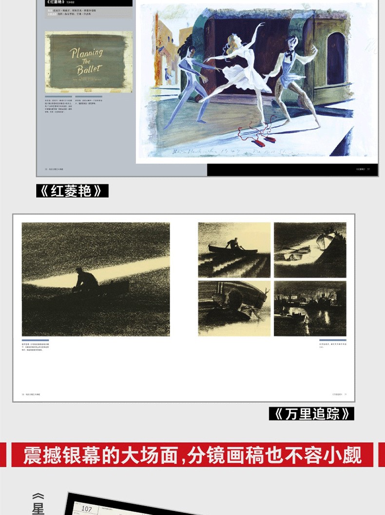 本書難能可貴地將分鏡的價值公之於眾,作者以其備受公認的行業影響力、全球化的卓越視野,竭力搜尋四處散落的檔案,溝通錯綜複雜的授權,精心編選展示了一系列風格各異、時代各異的故事板畫稿,收錄許多偉大電影的精彩瞬間。例如,威廉·卡梅倫·孟席斯(《亂世佳人》)和索爾·巴斯(《驚魂記》《斯巴達克斯》)等先驅大師們的罕見手稿,當代分鏡巨匠勞爾·蒙赫(《潘神的迷宮》)和珍·克拉克(《哈利波特與火焰杯》)的精美畫作。當然,還有更多首次揭露的故事板畫師及其畫稿,創作想法、幕後故事與作品欣賞。