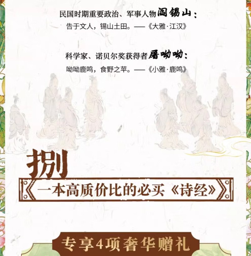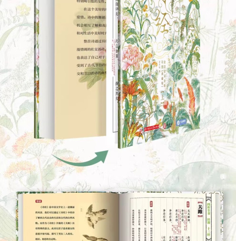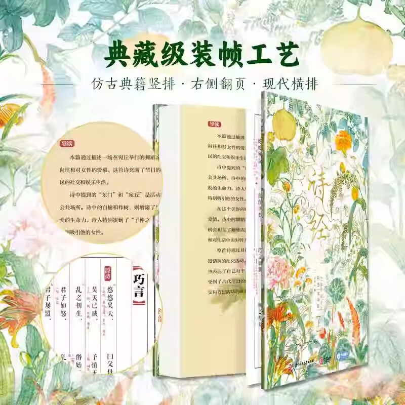 《詩經 》 全註全譯全本彩圖典藏版(上下2冊 )精裝16開本 隨書附贈3項好禮