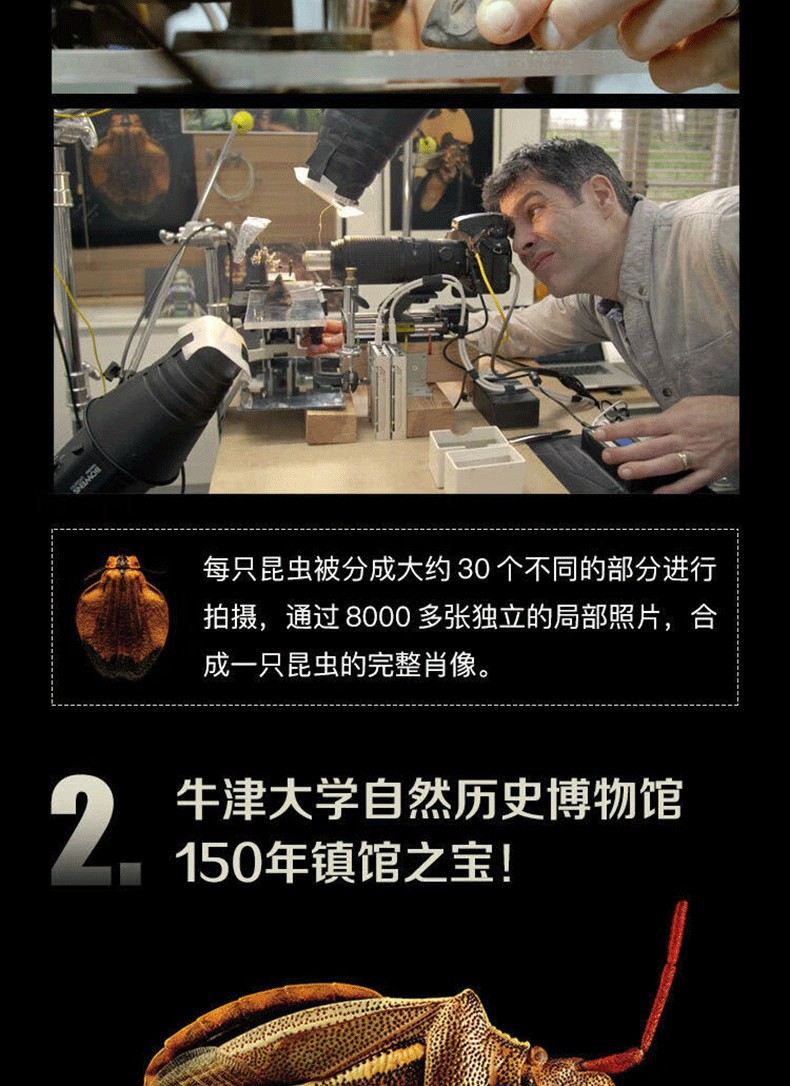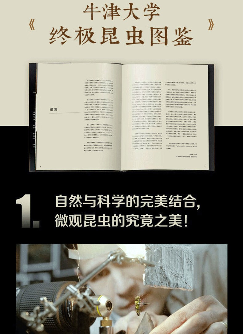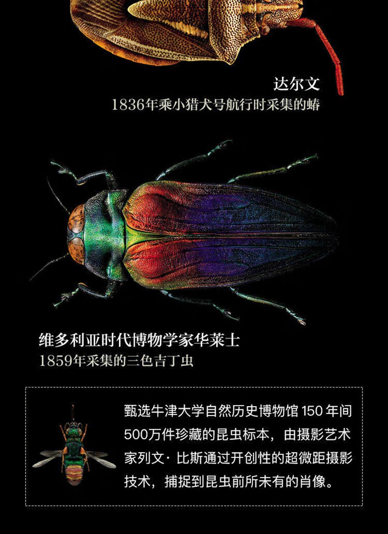 《牛津大學終ji昆蟲圖鑑》甄選牛津大學自然史博物館700 多萬昆蟲標本,其中包括達爾文等時代先驅收集的珍品,由攝影藝術家列文· 比斯透過開創性的超微距攝影技術,捕捉到昆蟲前所未*的肖像。