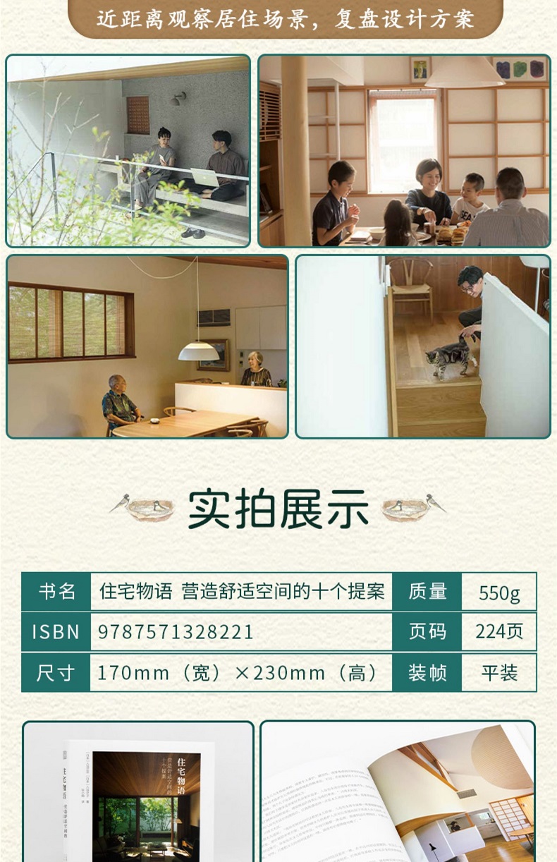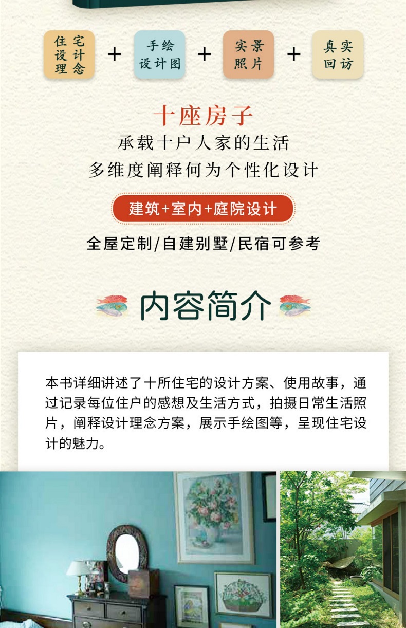 本書分為十章,詳細講述了十棟住宅的設計、生活故事。全書從第三人的視角出發,以參觀、採訪、交談的形式書寫正文內容,剖析設計師在設計房屋時的理念,以及業主對於某些設計要求背後的理由。全書以真實而親和的語言向室內設計從業者傳遞何為個人化的設計、如何滿足居住者的多元需求。 10個案例從房屋的外觀、庭院的一草一木、家中廚房、沙發等細節進行解說,附有多幅富有生活情趣和煙火氣的照片,還配有設計師親筆繪製的俯瞰圖、平面圖和截面圖。