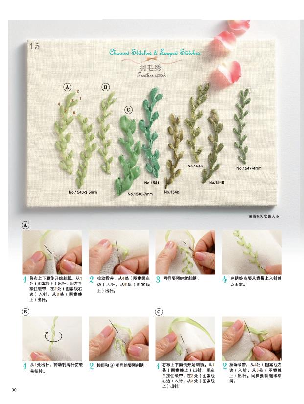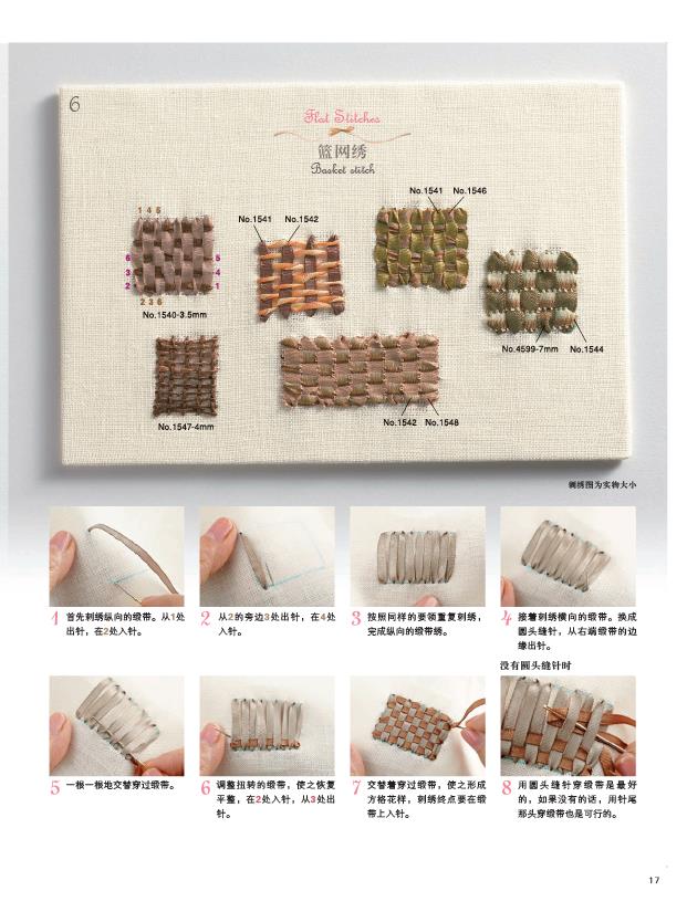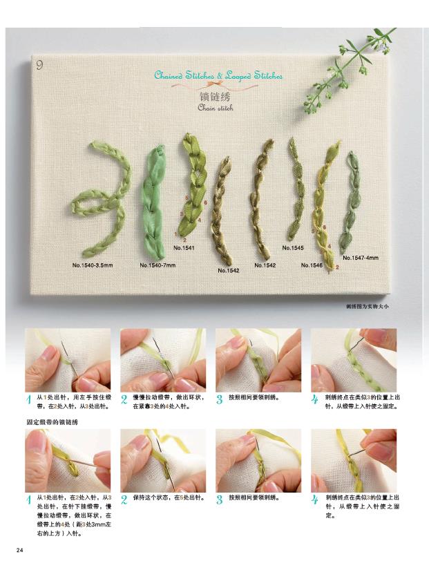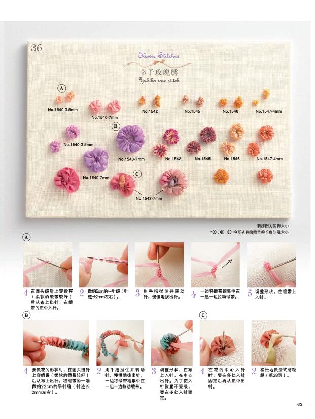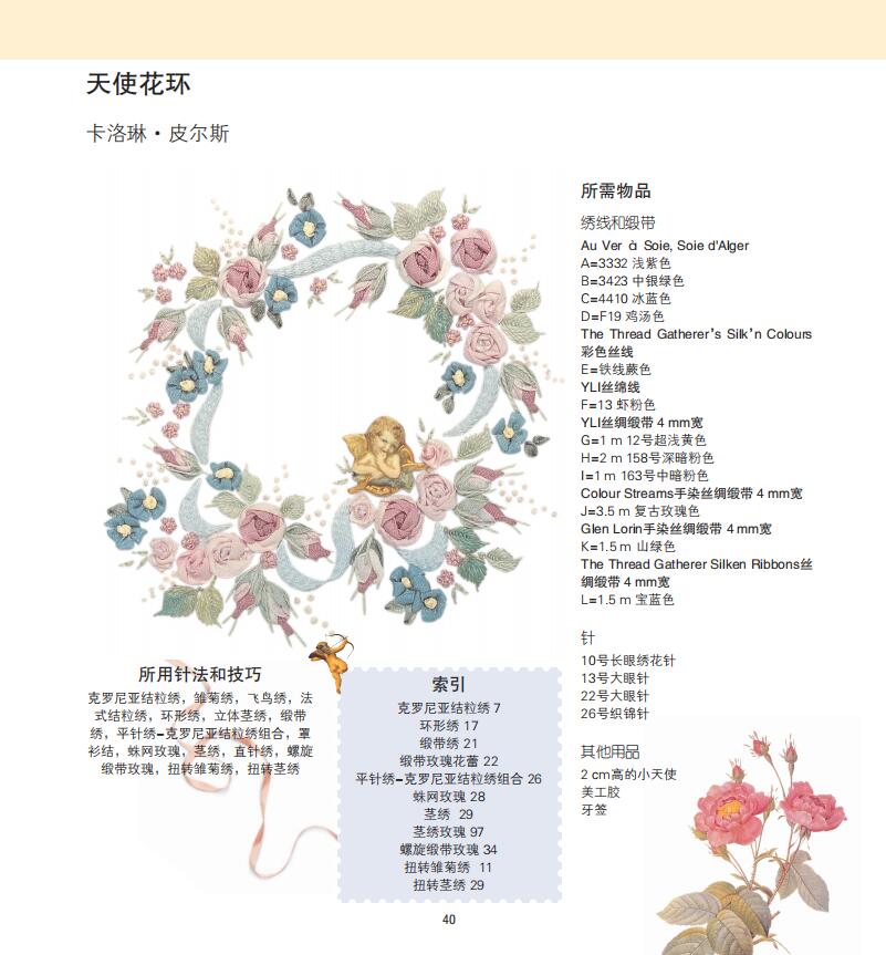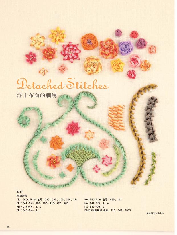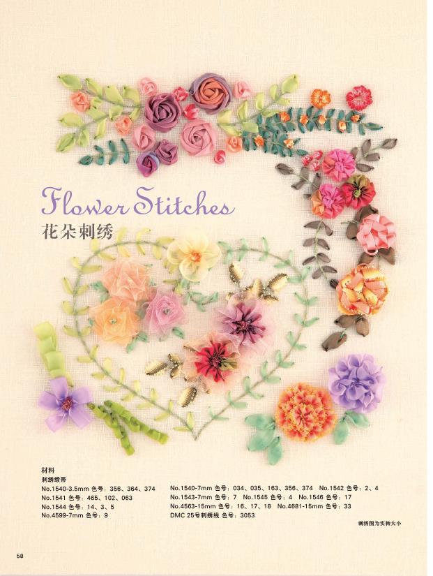 2.緞帶繡相關知識的完全指南,包括知識、技法、具體作品製作。