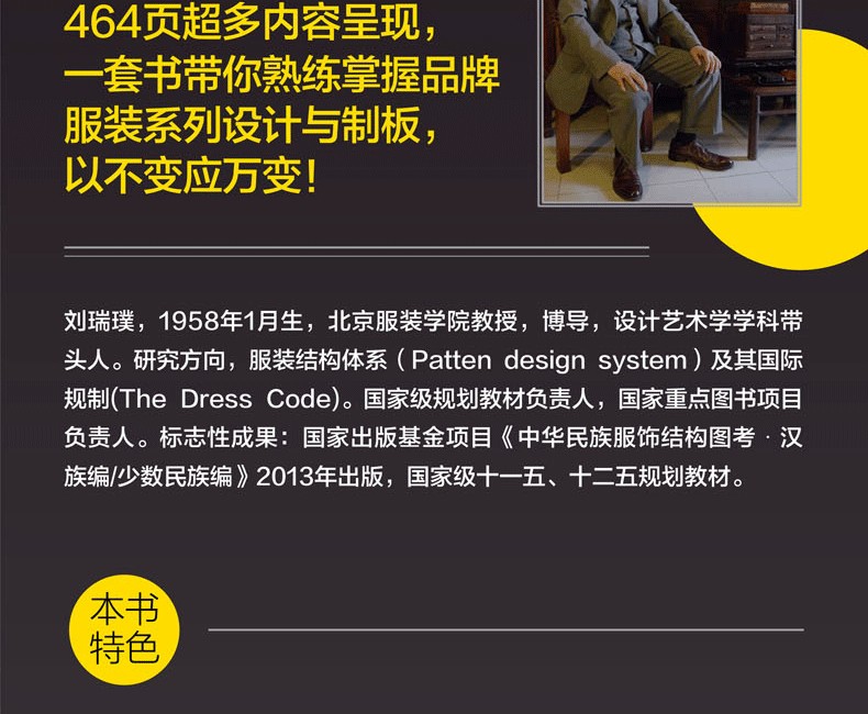 本書以國際男裝TPO標準規則為出發點,以實現男裝設計與製板的有效結合為目標,對男士的西裝、外套、戶外服、褲子、背心和襯衫等主要品類的款式和紙樣的系列設計方法進行了詳細、全面、綜合的解析。以TPO為原則的“系列”設計形式,有助於改善國內“一款一板”的傳統打板方法,具有全新的技術含量和市場化操作方式,能激發男裝設計的主動性和創新性,從而提升男裝的內涵和附加值。