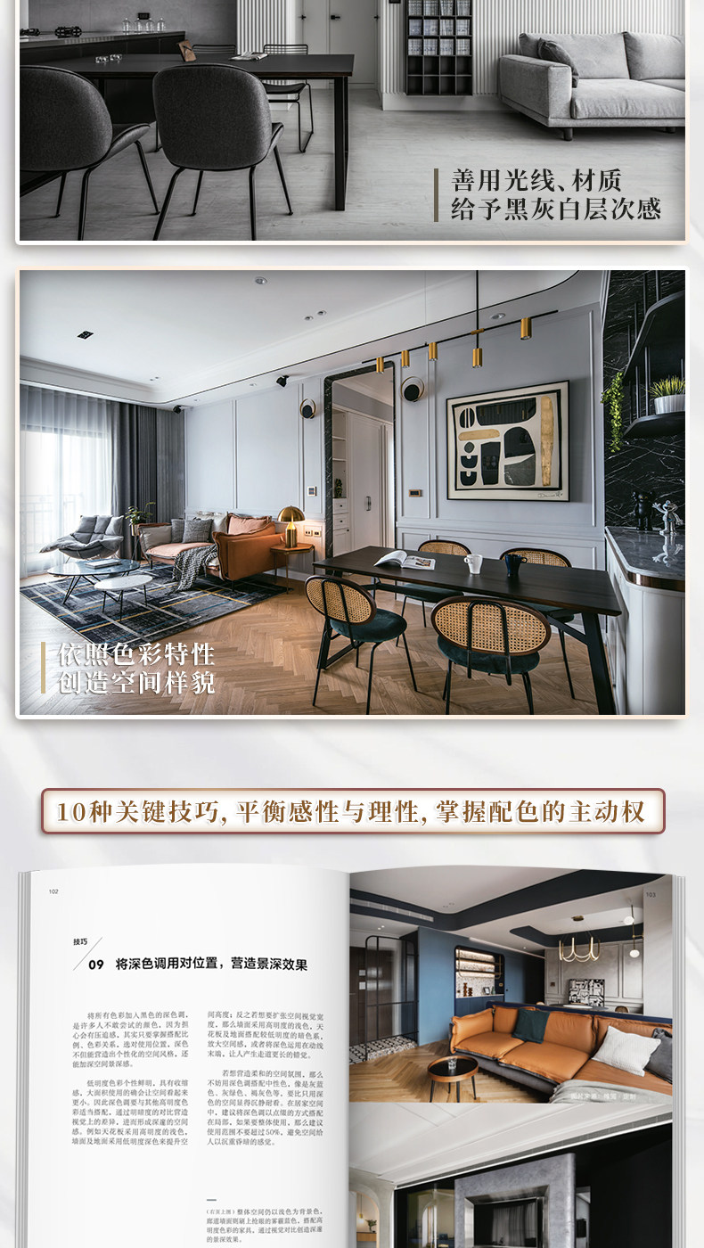 《色彩情緒空間》從色彩的基礎認知出發,系統梳理了冷色系、暖色系、中性色等家居常用色彩,並超越漆色本身,將視野拓展至材料、家具、家飾與綠植等多元載體,讓您理解色彩在家居中的綜合運用。