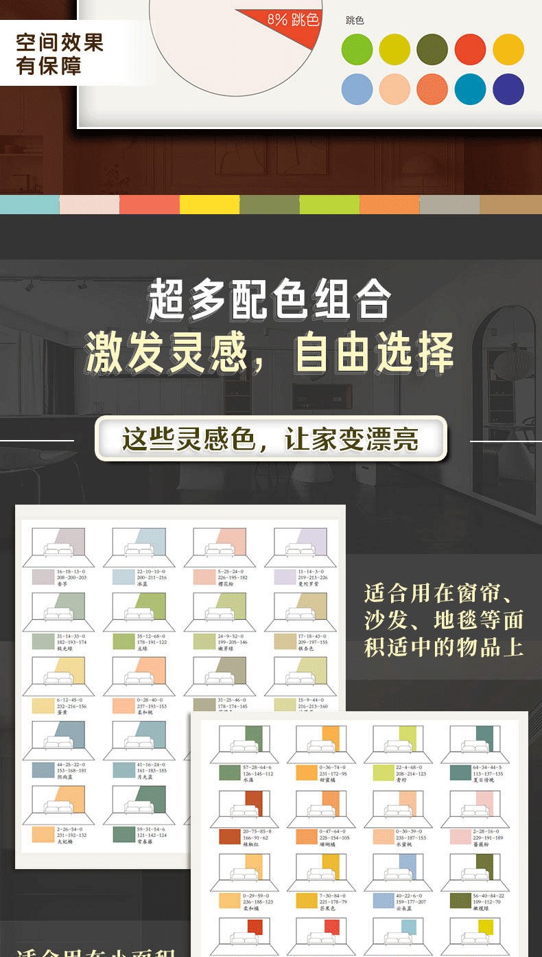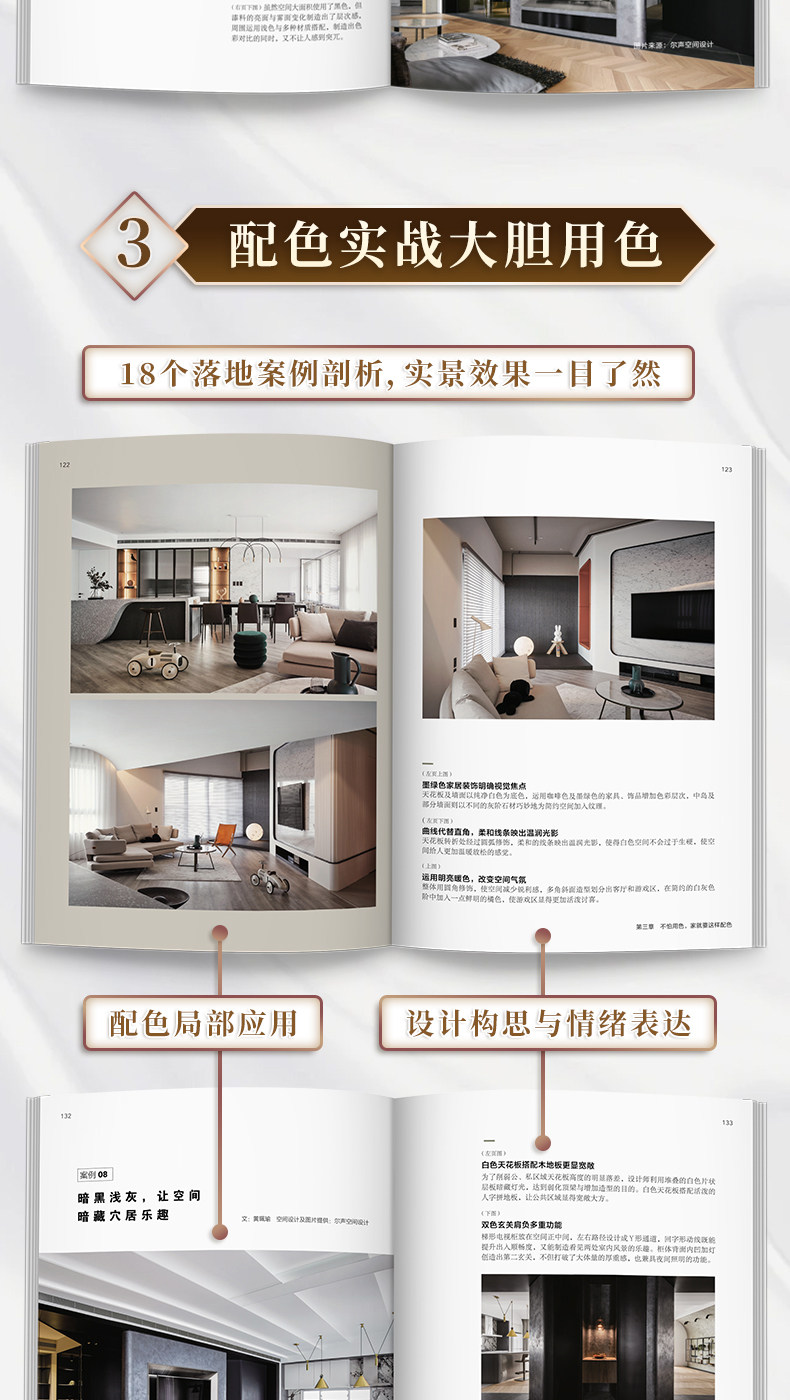 第三章:18個真實居家配色案例深度解析。理論終須付諸實踐。本章匯集了18個風格迥異的真實家居案例,從清新的鼠尾草綠美宅,到質感奢華的胭脂紅與石墨黑搭配;從純粹的50度灰空間,到充滿童趣的多彩之家……每一個案例都是一次生動的配色教學,詳細剖析其色彩選擇、比例調配與達成的空間,為你提供靈感與情緒複製的實戰經驗。
