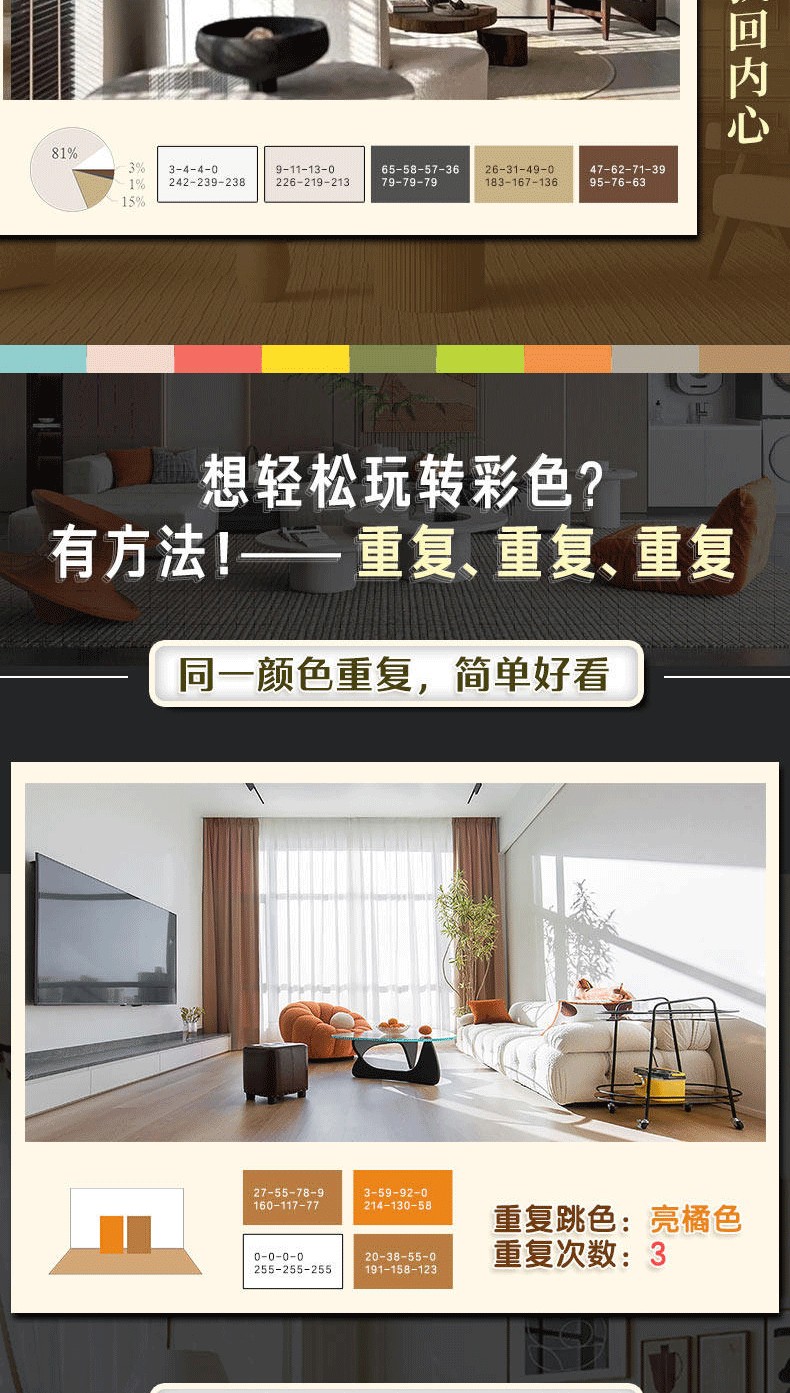 技巧 01  不會出錯的三色黃金配色比例