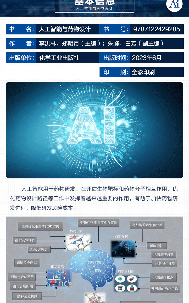 ①本書結合分層式、漸近式和拓展式等多樣的知識介紹形式,深入淺出地介紹藥物設計原理,剖析人工智慧的交叉應用實例,展望發展方向,適合於不同知識儲備、不同研究領域的讀者。