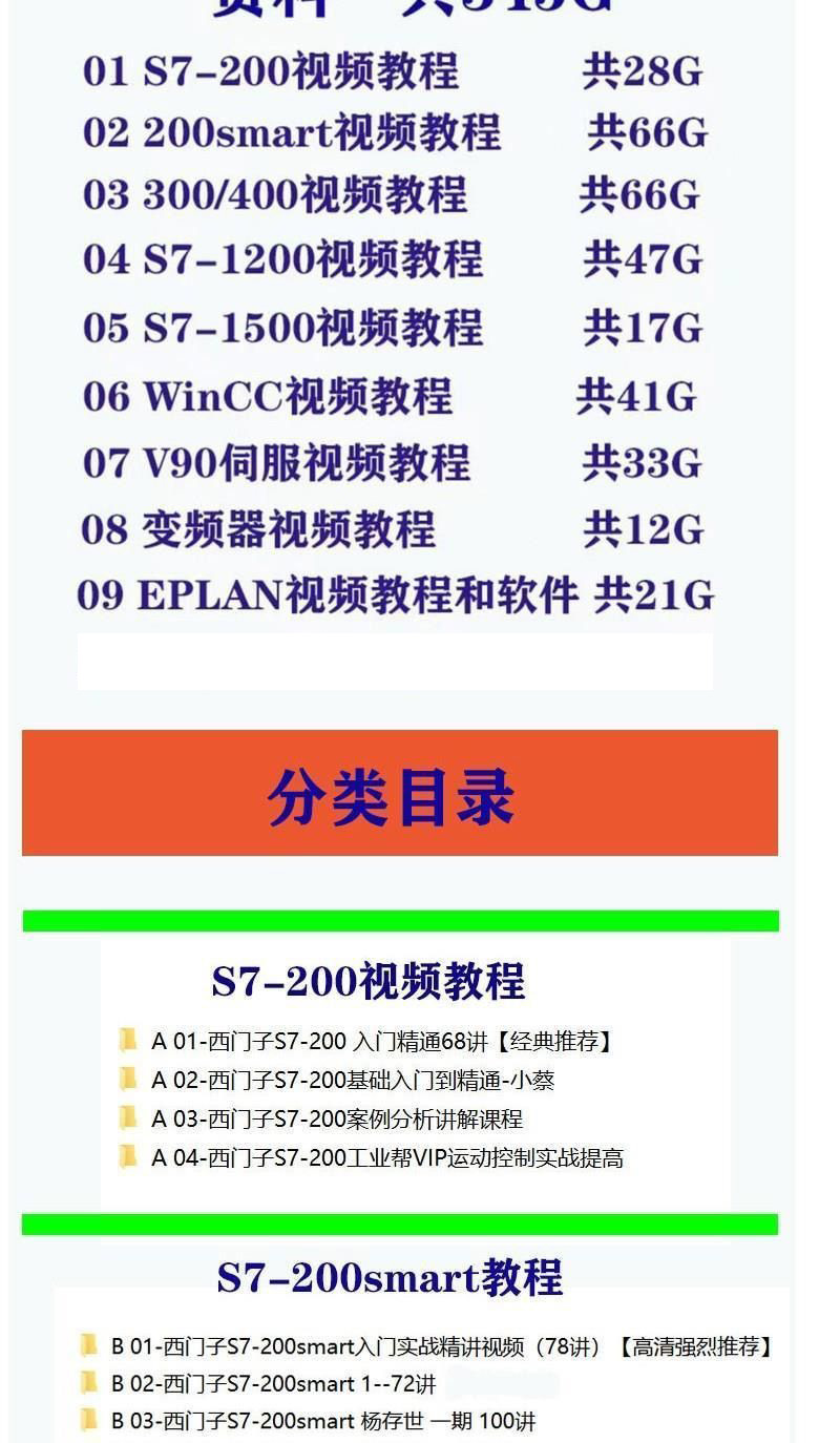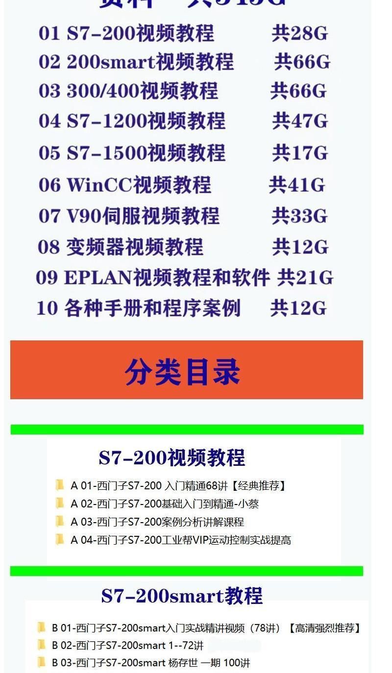 西門子PLC全套視頻教程 S7-200/300 博途1200/1500 WINCC觸摸屏 仿真編程軟件全套視頻課程(320G 硬碟出貨 免下載 即插即看)