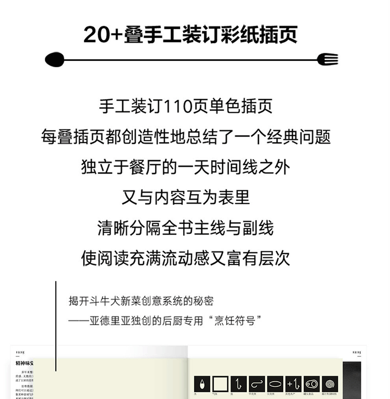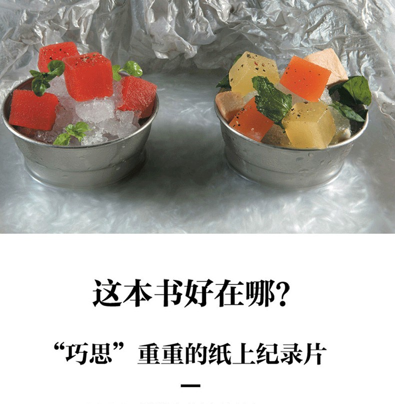 本書從早上6點15分開始,跟隨當地市場新鮮食材的腳步進入鬥牛犬餐廳。待主廚費朗到達研討會,晨間創意實驗會議正式開始……後廚的其他成員於下午2點30分抵達,前廳的日常準備逐漸就緒……客人於晚7點45分到達,而送走最後一位客人時已是凌晨2點。本書以充滿新意的架構和設計,為美食愛好者提供了一次被從業者奉為「行業機密」的神奇體驗。