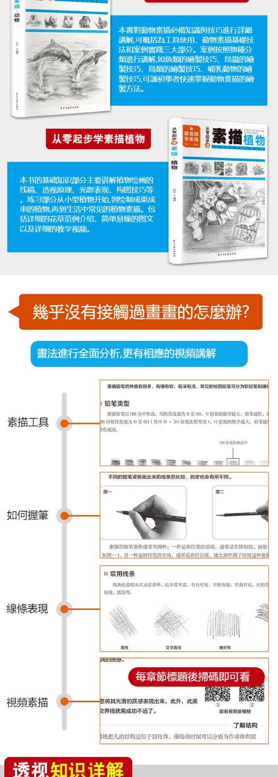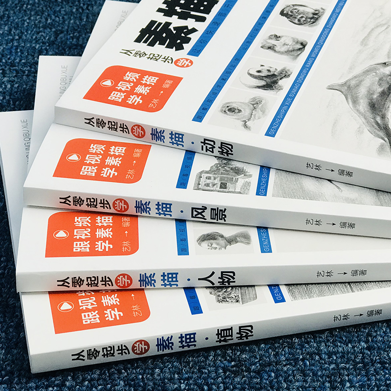 【全套4冊】从零起步学素描 零基础教程从入门到精通 植物动物风景人物素描速写