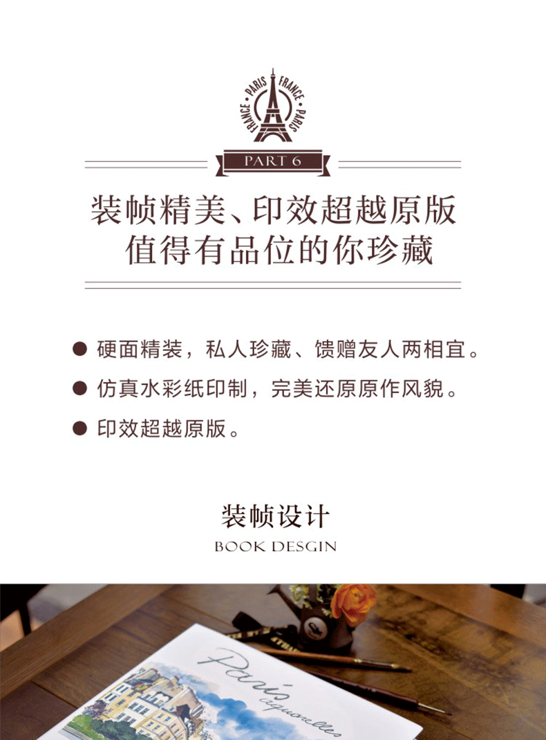 《巴黎水彩筆記》是向巴黎之美致敬,是為巴黎的榮耀譜寫的一曲頌歌,一首充滿愛與柔情的讚美詩…