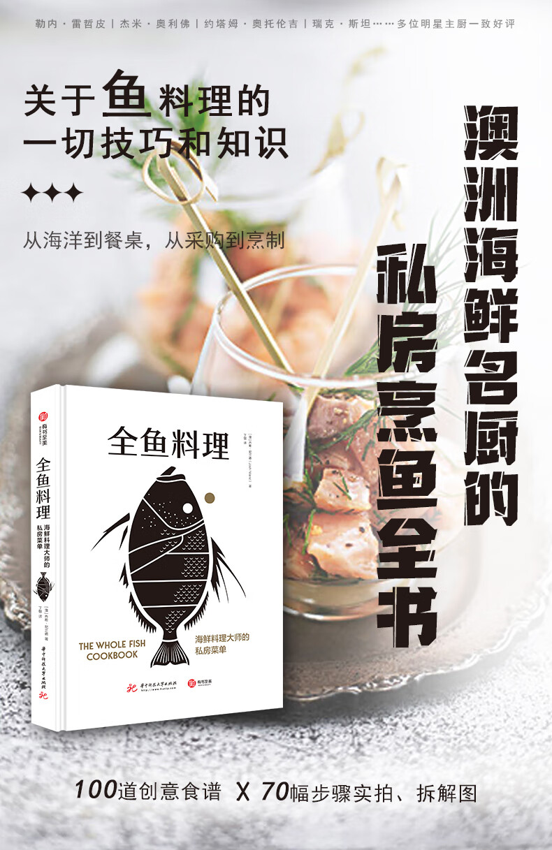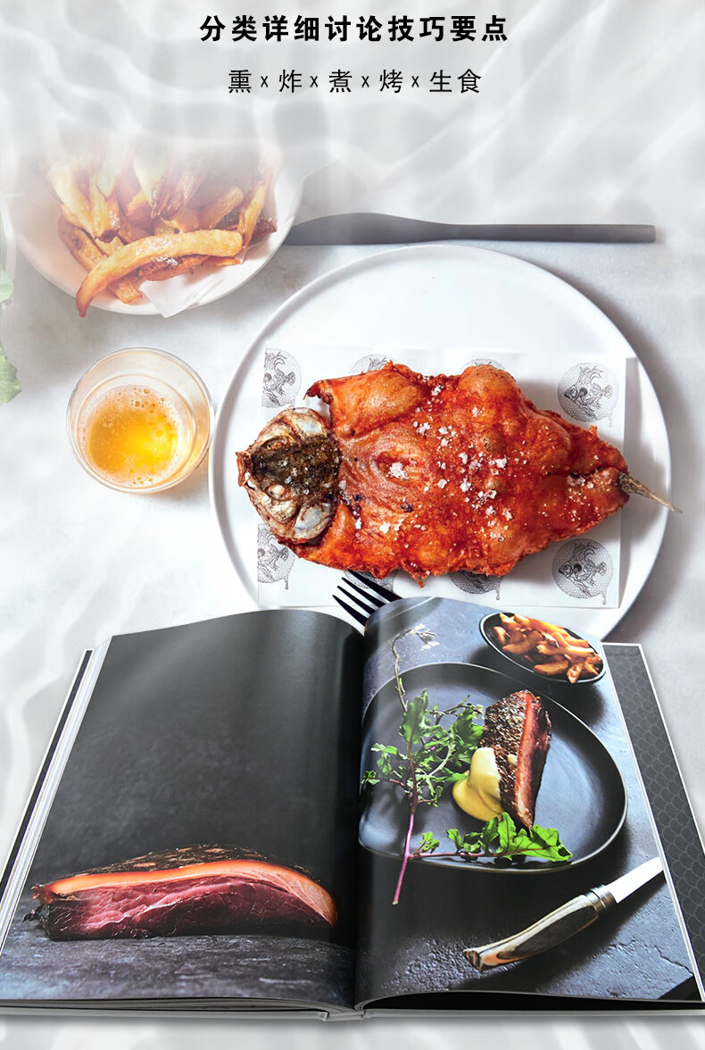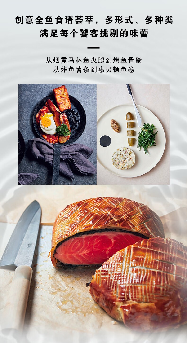 2.大廚私房創意食譜薈萃:書中包含70種魚類食譜,從煙熏馬林魚火腿到烤魚骨髓,從炸魚薯條到惠靈頓魚捲,作者詳細討論了煮、炸、烤、生食各種烹飪形式的技巧要點,食材涉及三文魚、石斑魚、金槍魚、多寶魚等多種海魚,並貼心地在每道菜譜下提出魚類備選方案。這些食譜是作者多年的從業結晶,對專業廚師有指導和啟發作用。